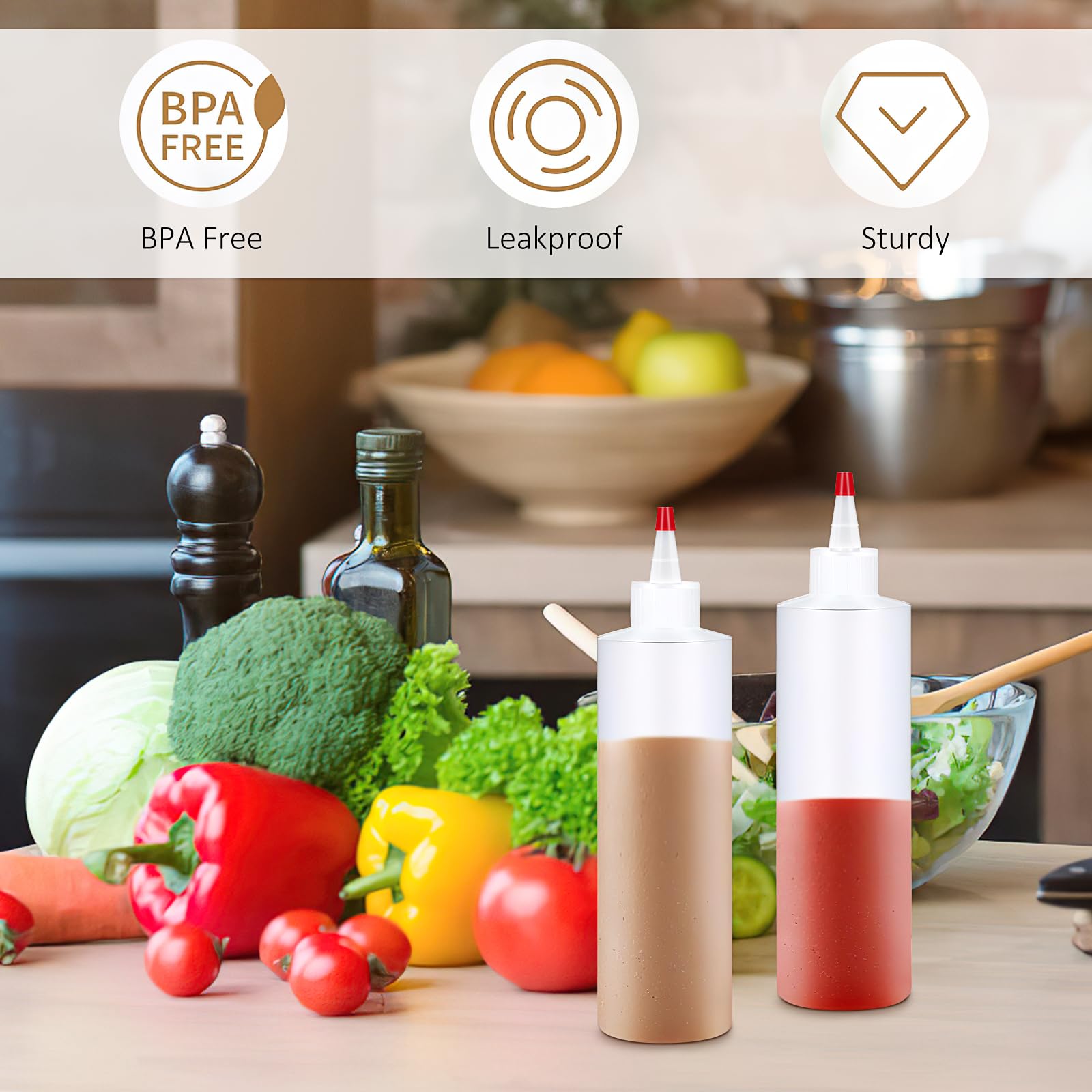 - Wide Applications: the empty plastic bottles are versatile enough to hold liquids, appropriate for syrups, dressings, oils, vinegar, sauces and more; They can also be applied for baking, cooking, painting, creating art crafts, making desserts and so on