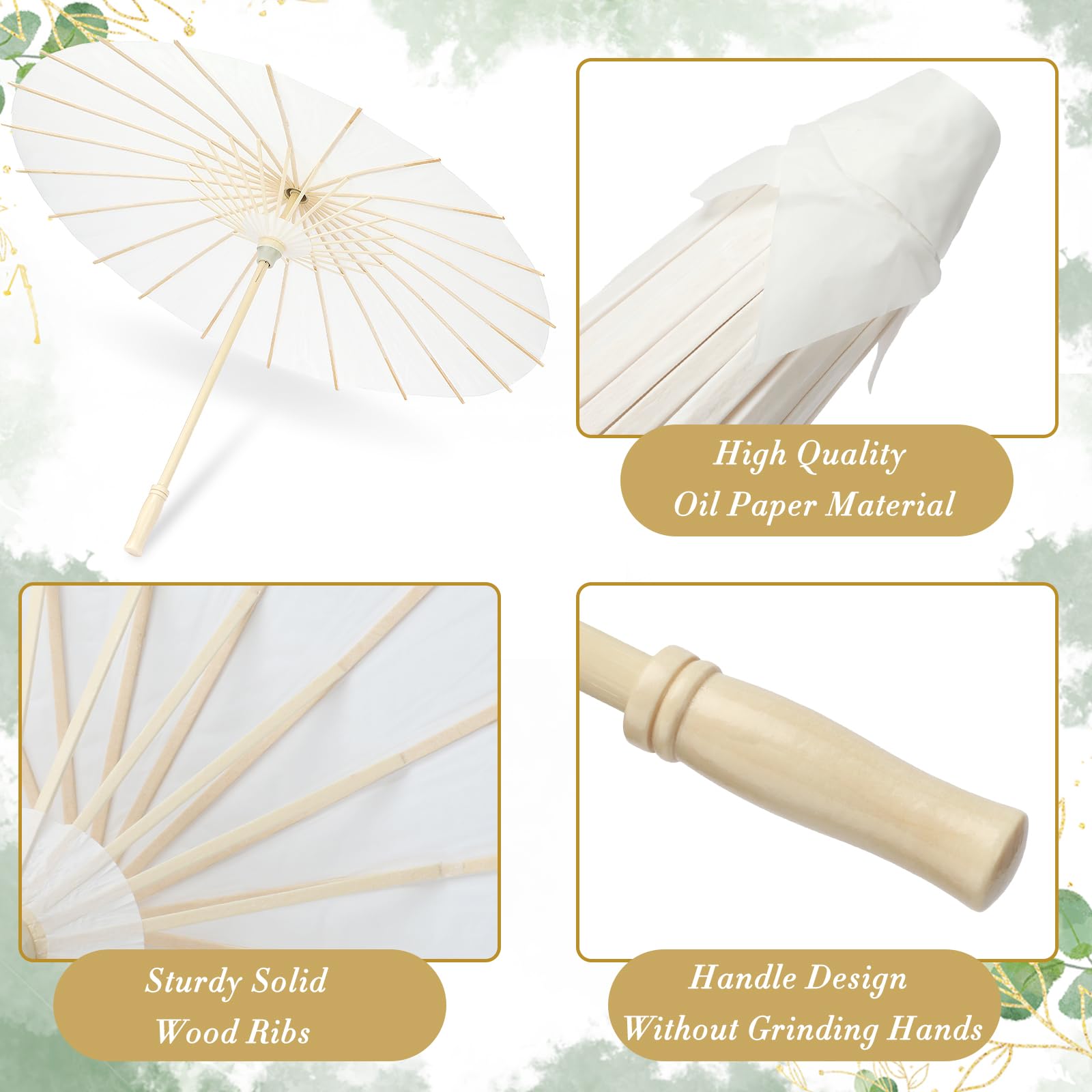 - Premium Quality Materials: made of high-quality oil paper and solid wood ribs, these 23.6 inch white paper umbrellas have a smooth and flat surface, sturdy handle, and smooth opening and closing. These white paper umbrellas are odorless, durable, and can add a romantic and elegant atmosphere to any environment