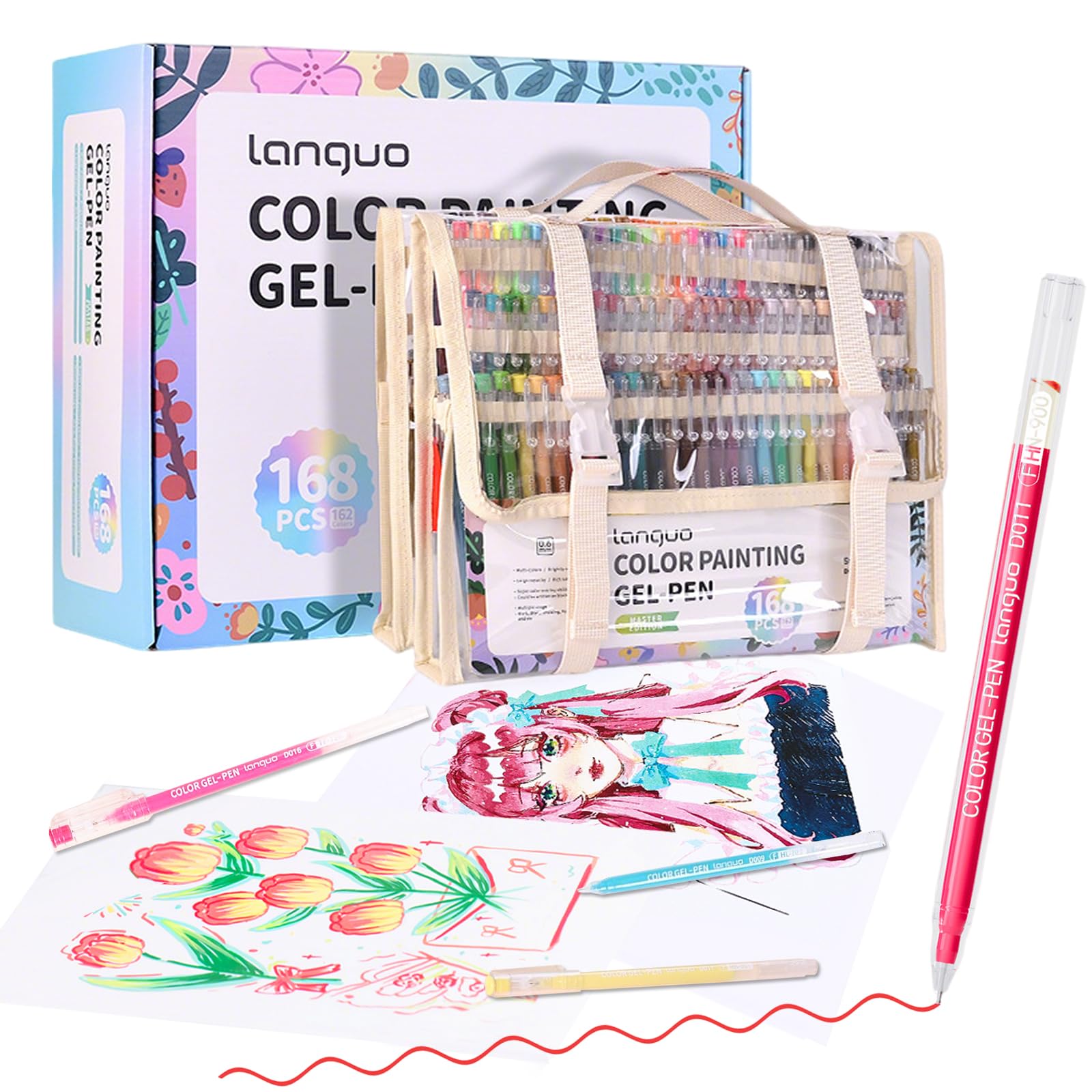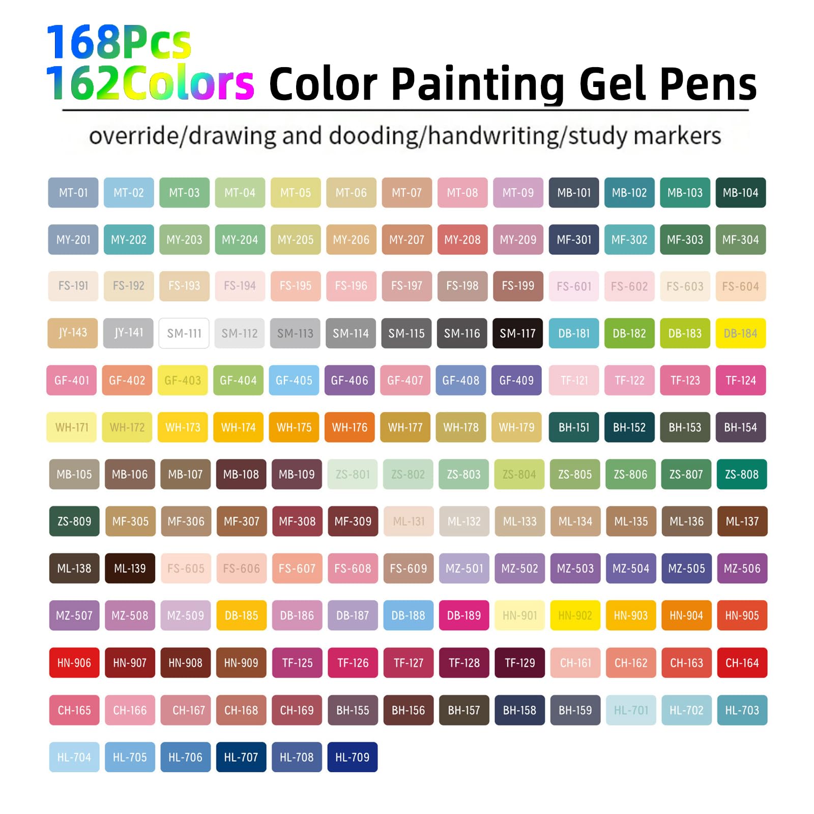 168Pcs 162 Colors Gel Pens Set,0.6mm Fine Point Quick-Drying Ink with Exquisite Transparent Storage Bag for Adult Coloring & Journaling, Drawing & Office