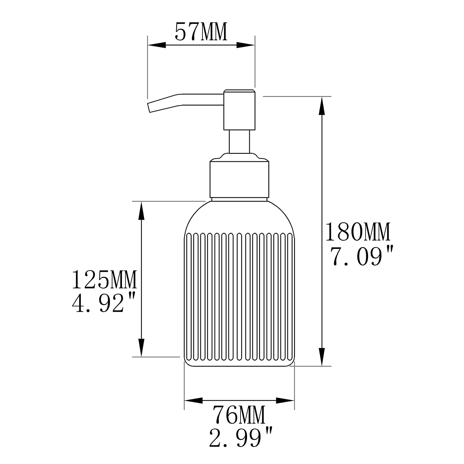 - Brushed Gold Soap Dispenser Size: 7" tall, 3" in diameter. Use as kitchen soap dispenser or bathroom hand soap dispenser. Dishwasher safe. Perfect for liquid soap, body wash,dish soap,shampoo,lotion,dish soap, hand soap, massage oils.