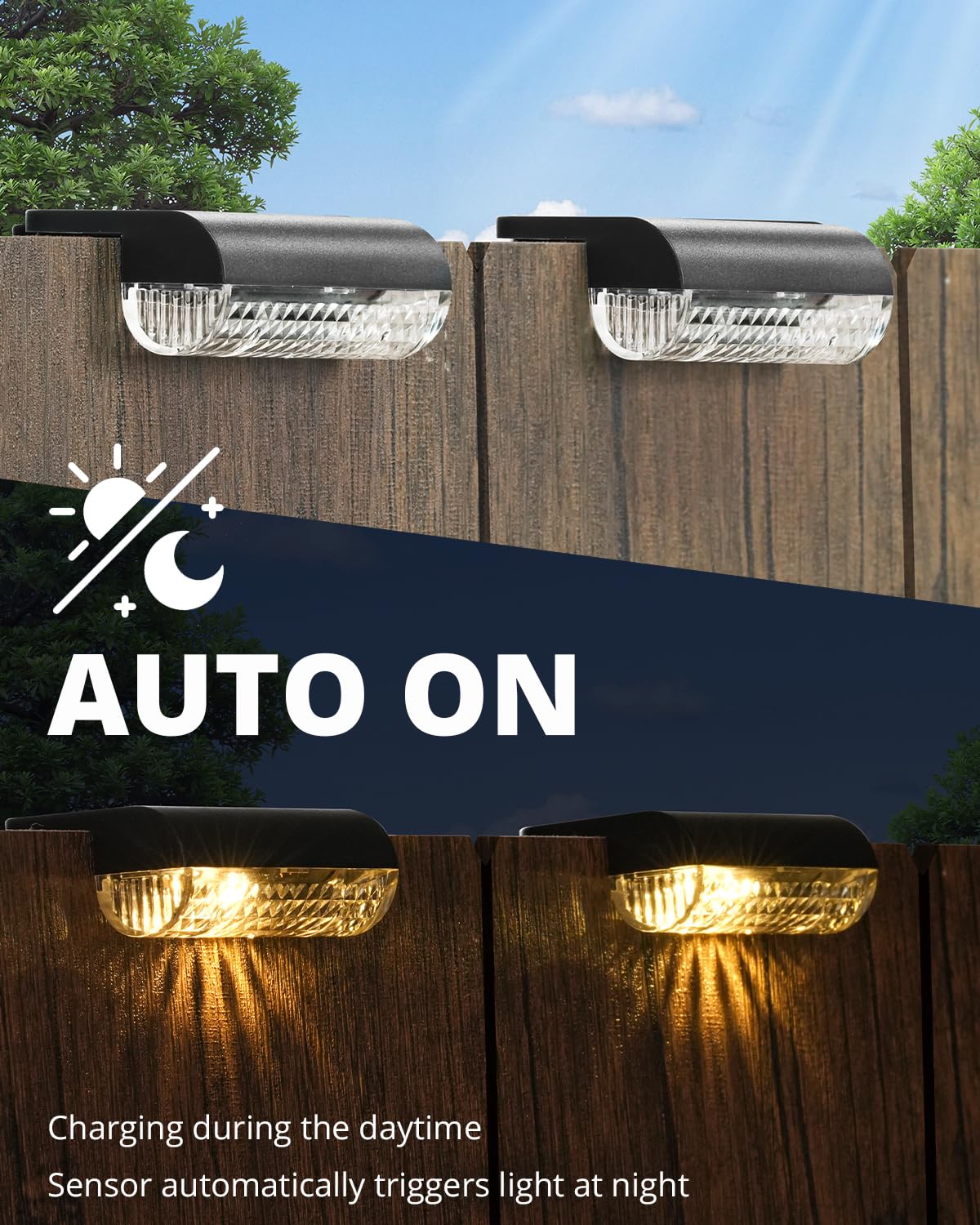 - Waterproof &Durable :These solar fence lights are made of weather resistant ABS,These lights are sealed, to assure no water leakage.they withstand various weather conditions. The sleek design adds a modern touch to your outdoor decor, while the sturdy construction ensures durability.