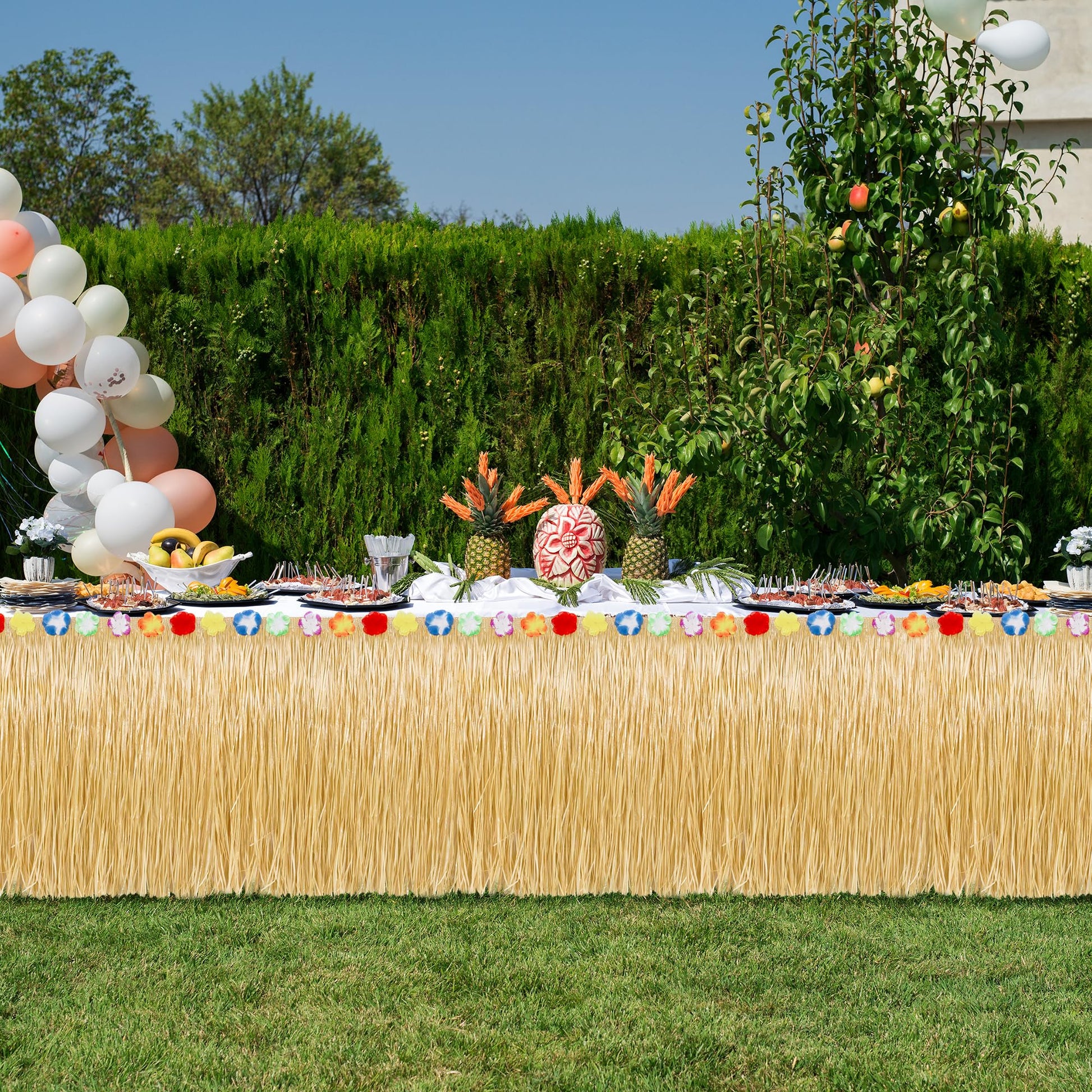 - 16PCS Gold 2PCS Gold Hawaiian Grass Table Skirt Hawaiian Island Party Decorations
