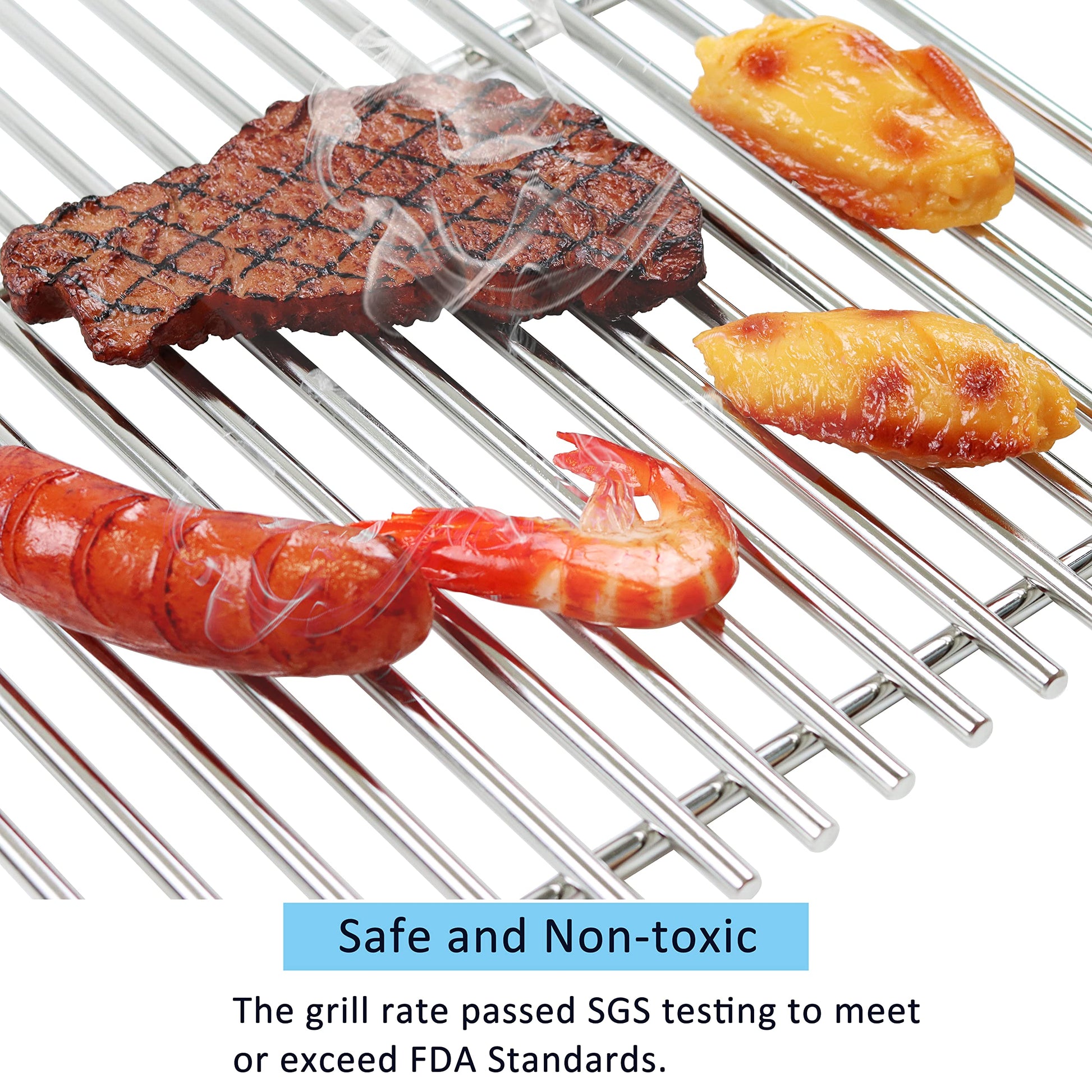 - 【Extremely Durable】Made of durable 7 mm (0.28 in) Solid Rod Stainless Steel, the grates distribute heat evenly across the entire grate surface, maintaining consistent grilling temperatures and enhancing original flavor of food. It also has better bearing capacity when compared to other grill grates