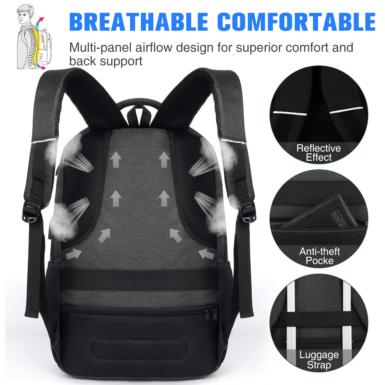 - Comfortable & Sturdy: This college backpack with a U-shaped 3D design on the back helps air convection, ventilation and heat dissipation. Comfortable mesh breathable and adjustable shoulder strap with plenty of foam pad to relieve more than one-third shoulder pressure than regular men and ladies backpack