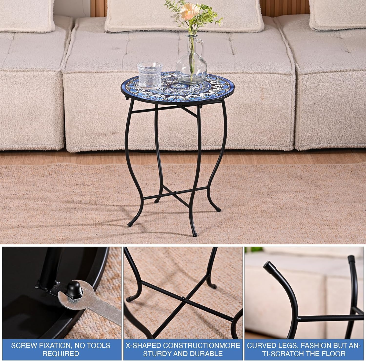 17" Tall Patio Side Table, 14 Inch Round Side Table, Weather Resistant Anti-Rust Metal Indoor Outdoor Side Table for Patio Yard Porch Balcony Garden Bedside, Dark Blue