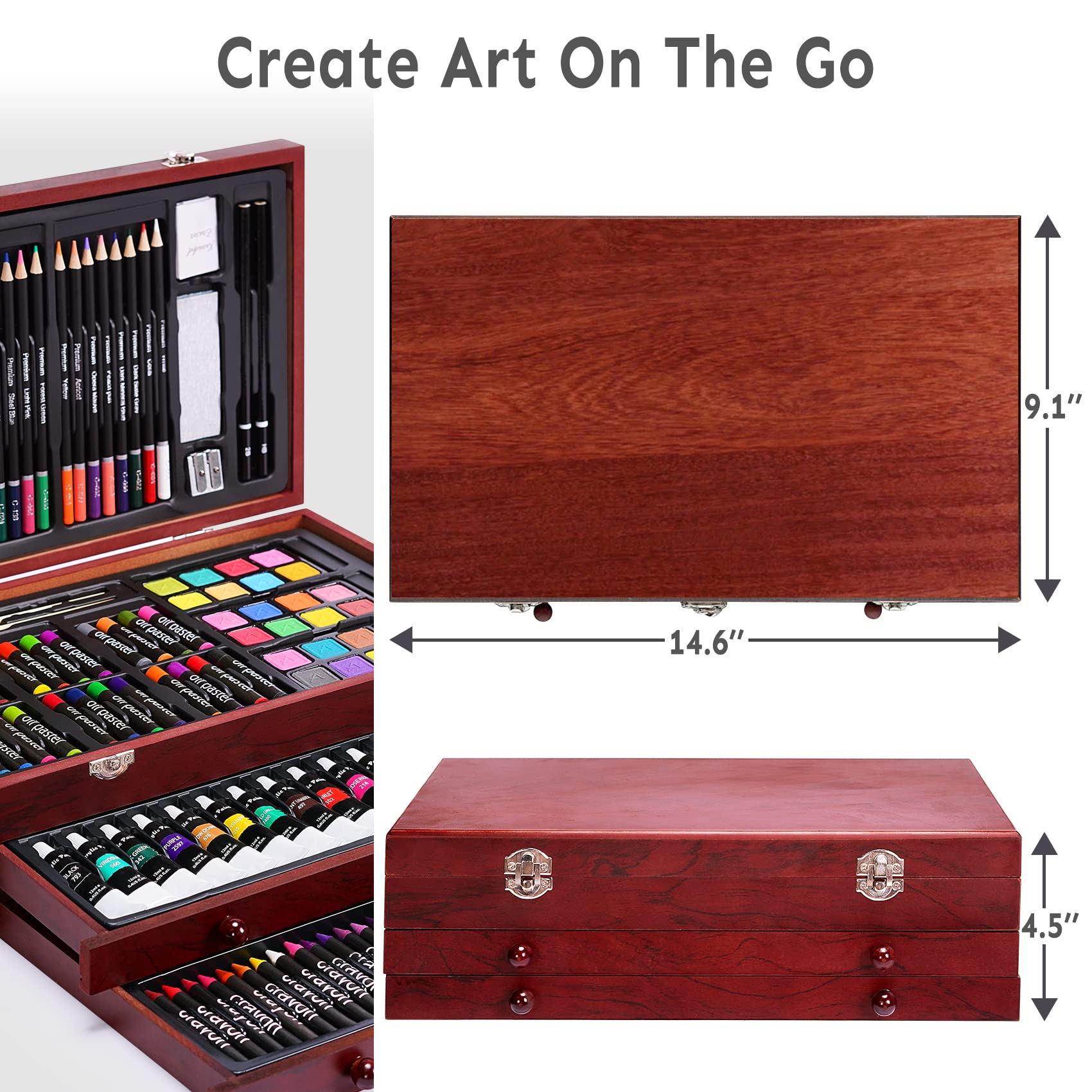 - ✅Unique Design: Our gorgeous colors and design tools are neatly organized and arranged in a handy rich mahogany wood case so you can create art wherever you go. This deluxe art wooden case with removal drawer to conveniently store art supplies. Sturdy protective wood case to keep supplies organized.