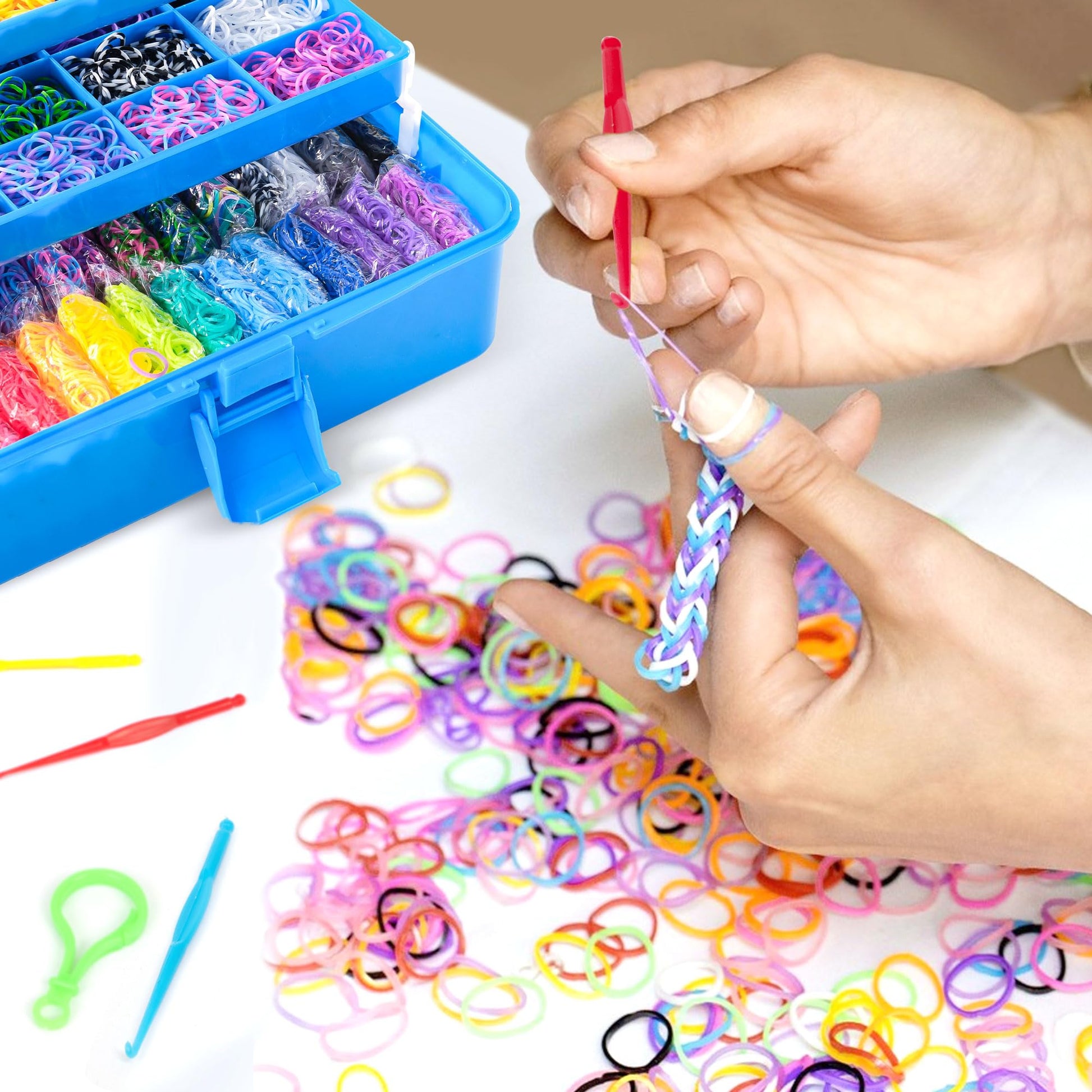 - 【INSPIRE CREATIVITY】This rubber band bracelet kit can stimulate your creativity. Using our colorful band loom kit, you will create lots of fun things, such as bracelets, necklaces, hairbands, bag accessories, and many other ornaments. More wonderful ways to play are waiting for you to discover!