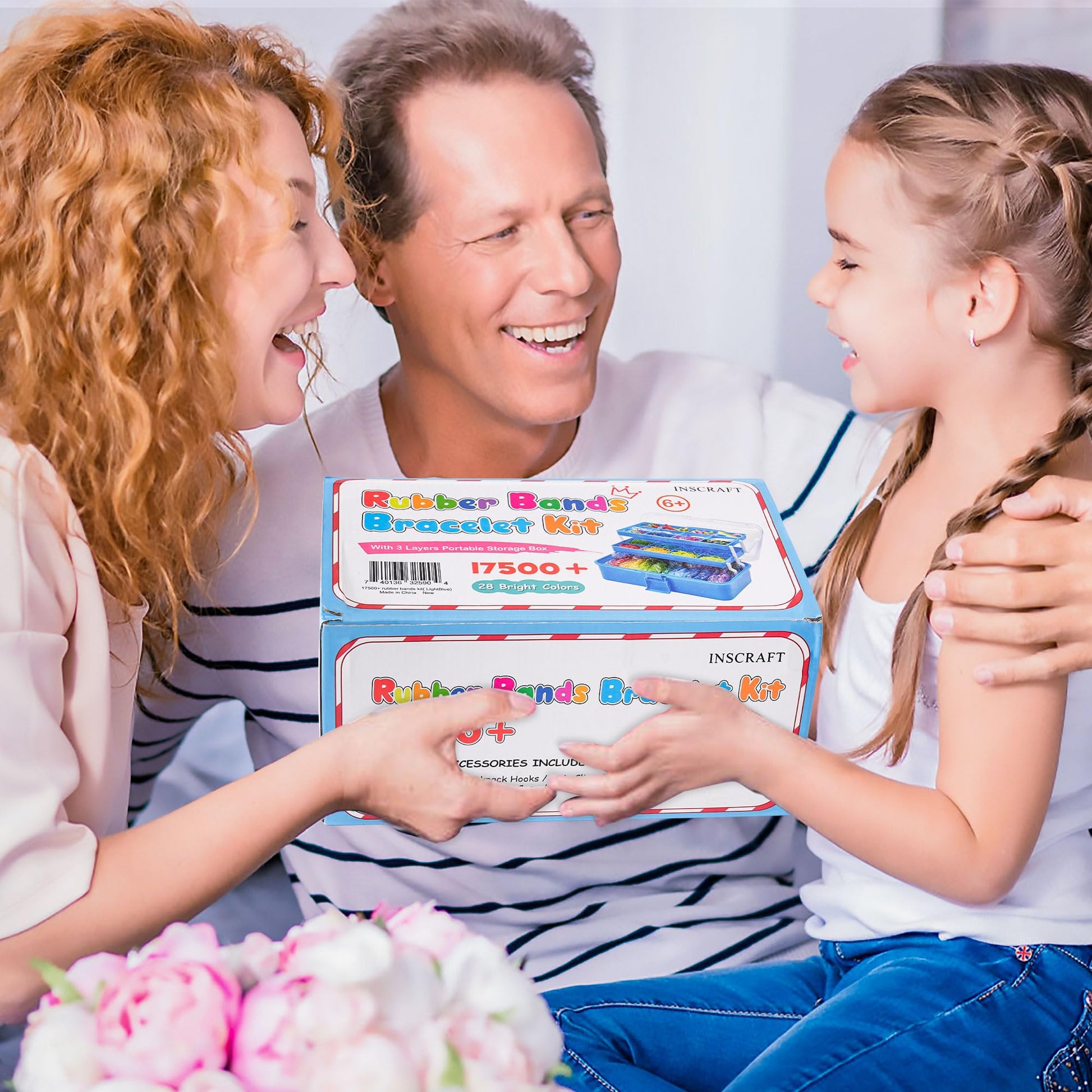 Details: Inscraft 17500+ Rubber Loom Bands with 3 Layer Deep Blue Container, 28 Colors, 600 S-Clips, 352 Beads, 40 Cartoon Pendant, Bracelet Making Refill Kit for Kids