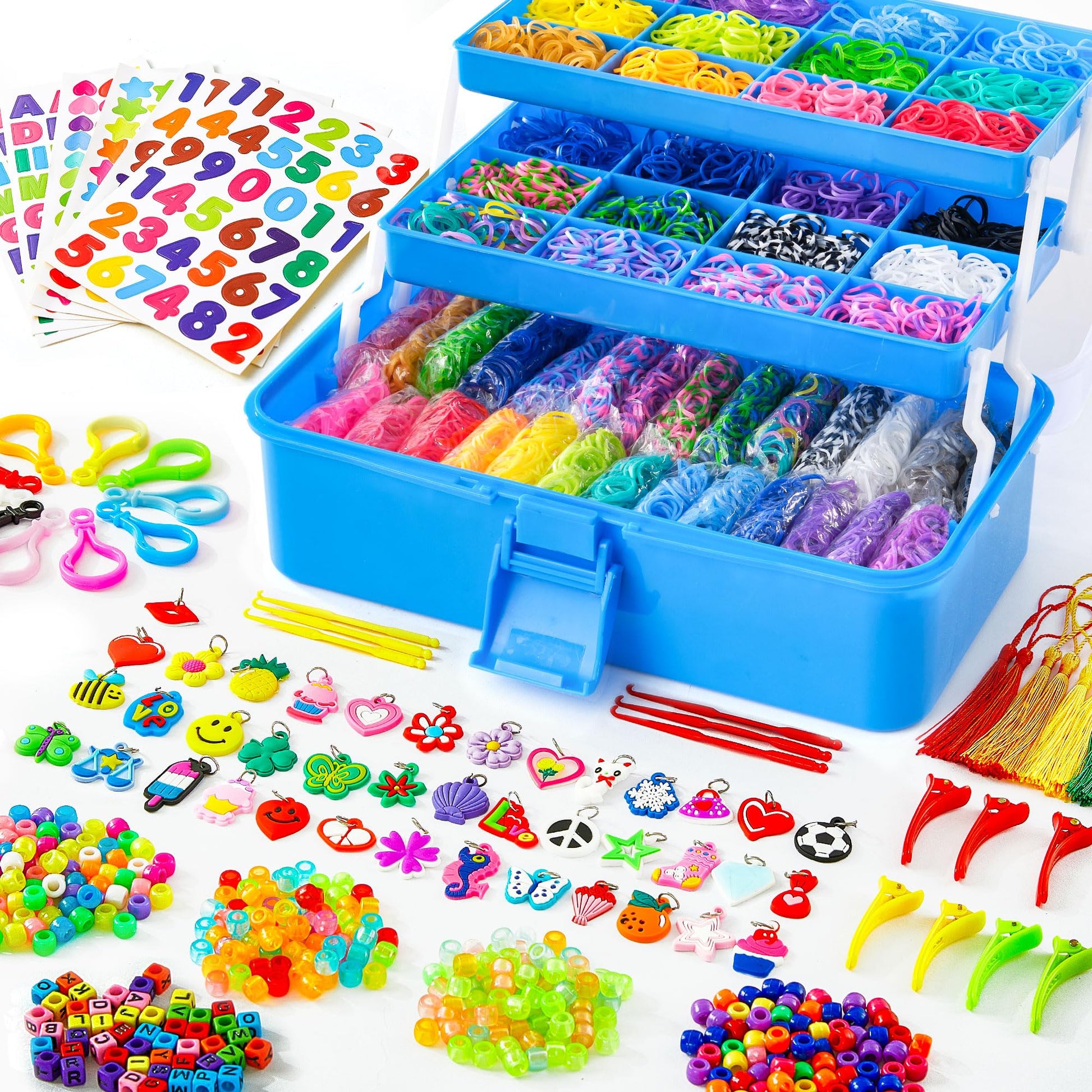 17500+ Rubber Loom Bands with 3 Layer Deep Blue Container, 28 Colors, 600 S-Clips, 352 Beads, 40 Cartoon Pendant, Bracelet Making Refill Kit for Kids