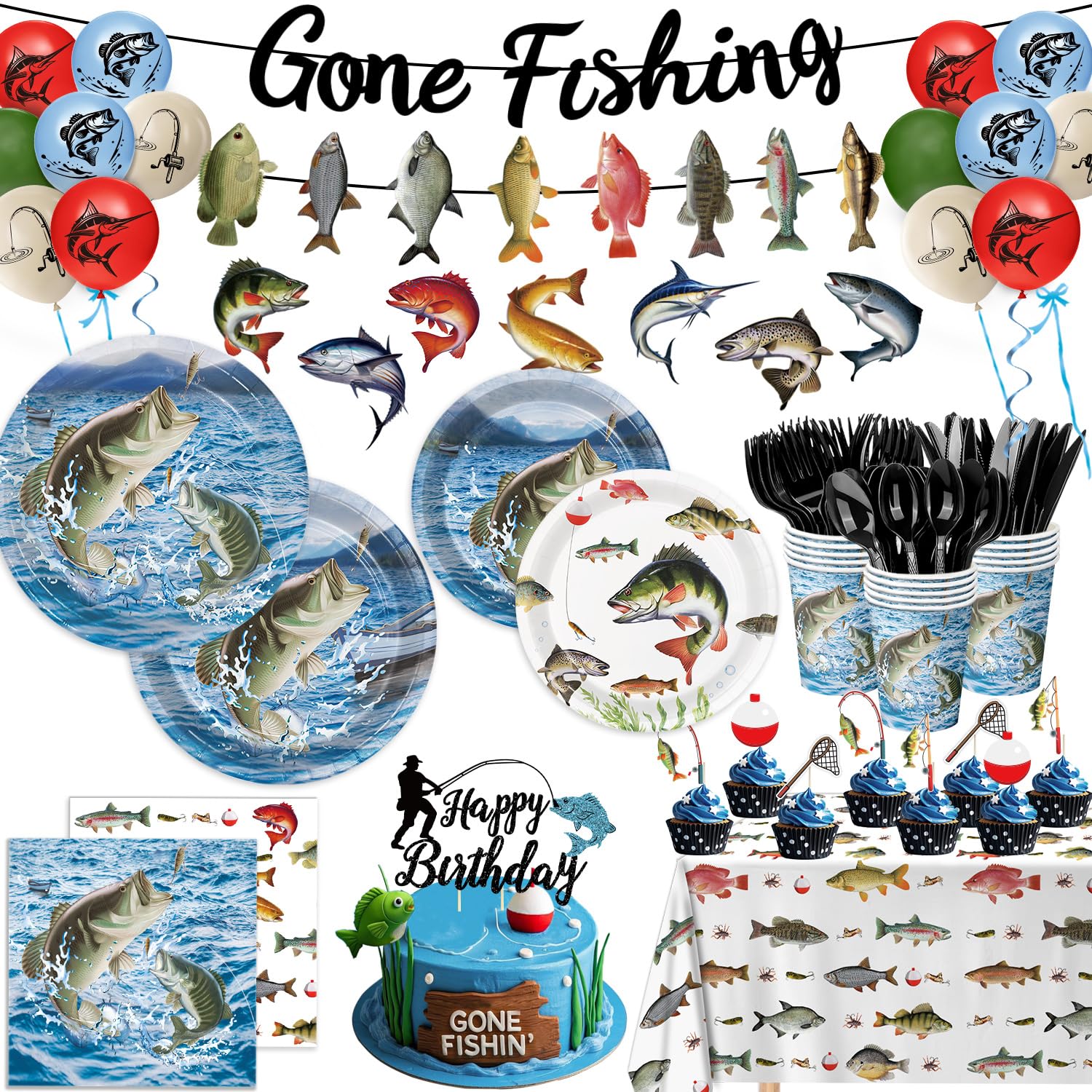 - GONE FISHING DESIGNS: This series of party supplies is designed with a Gone Fishing theme. The paper plates feature boats, fish, fishing lines, bait, trees, river water, and other designs in harmonious colors, creating a great fishing party atmosphere for you