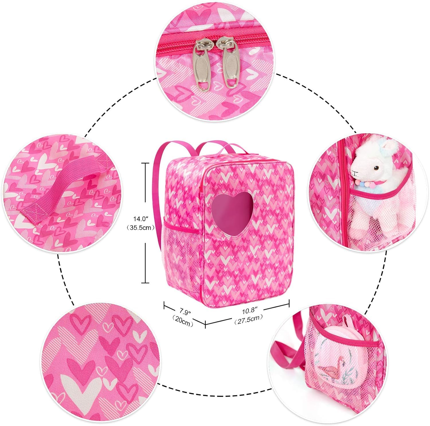 - What You Get:1*Pink doll carrier bag with love pattern ,1*Flamingo skirt,1* White cloth shoes for doll,1* Doll backpack with pink ostrich pattern,1*Doll sunglasses,1*Toy lamb(Dolls are not included)