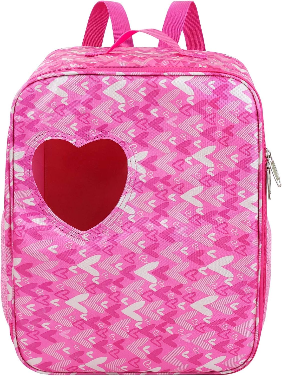 18 Inch Girl Doll Carrier Bag with Doll Clothes and Accessories,Including Dress, White Cloth Doll Shoes ,Doll Backpack, Sunglasses, Toy Lamb