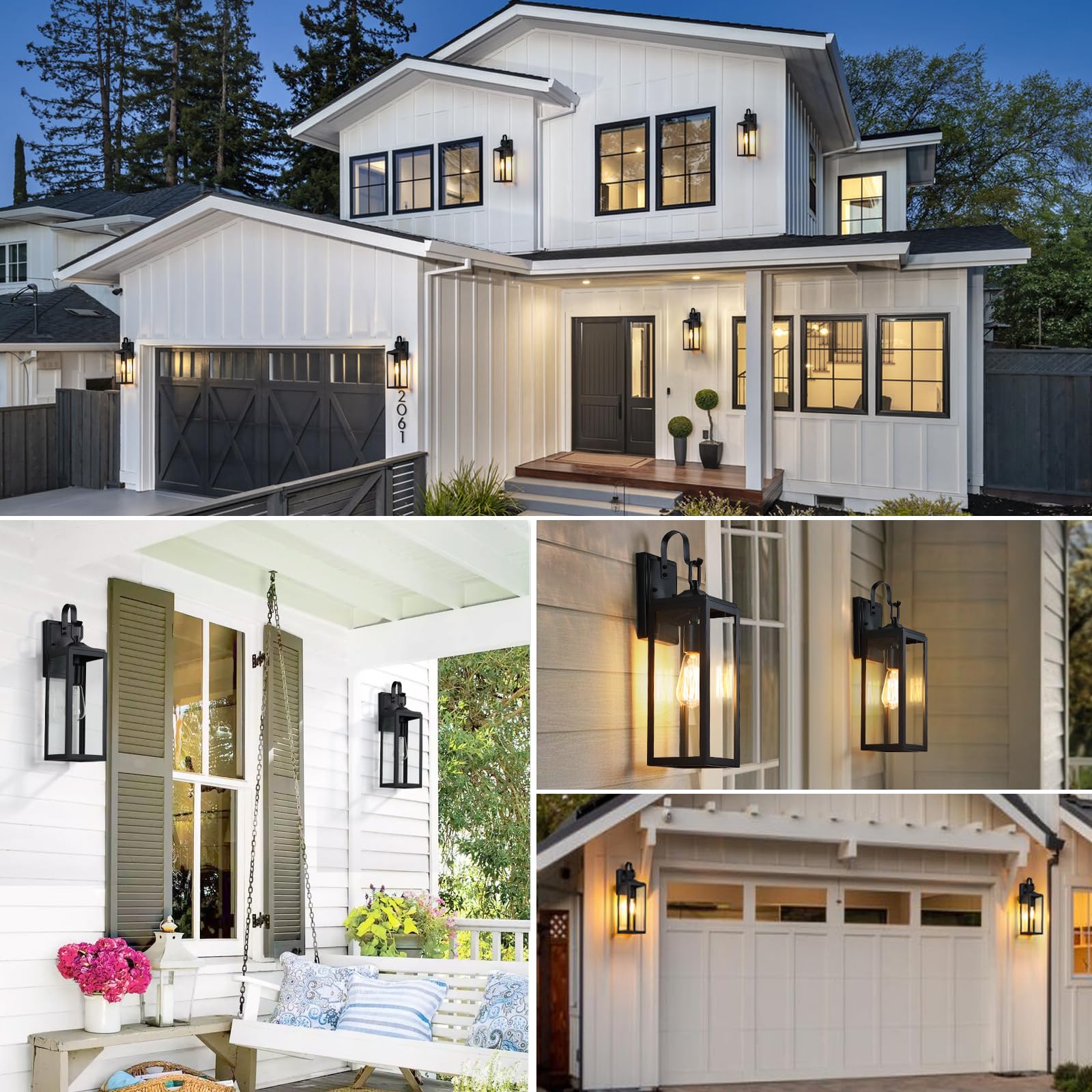 - 【Reliable Weather-Resistance】: This exterior light fixture is constructed with heavy-duty aluminum and tempered glass panels, with no glue on inner seams, perfect for outdoor use - front porch, garage, driveways, shed, etc. Even it is rain, snow, ultra-high or low temperatures, these outdoor wall lights will never get rusty or corrosion after years of use.