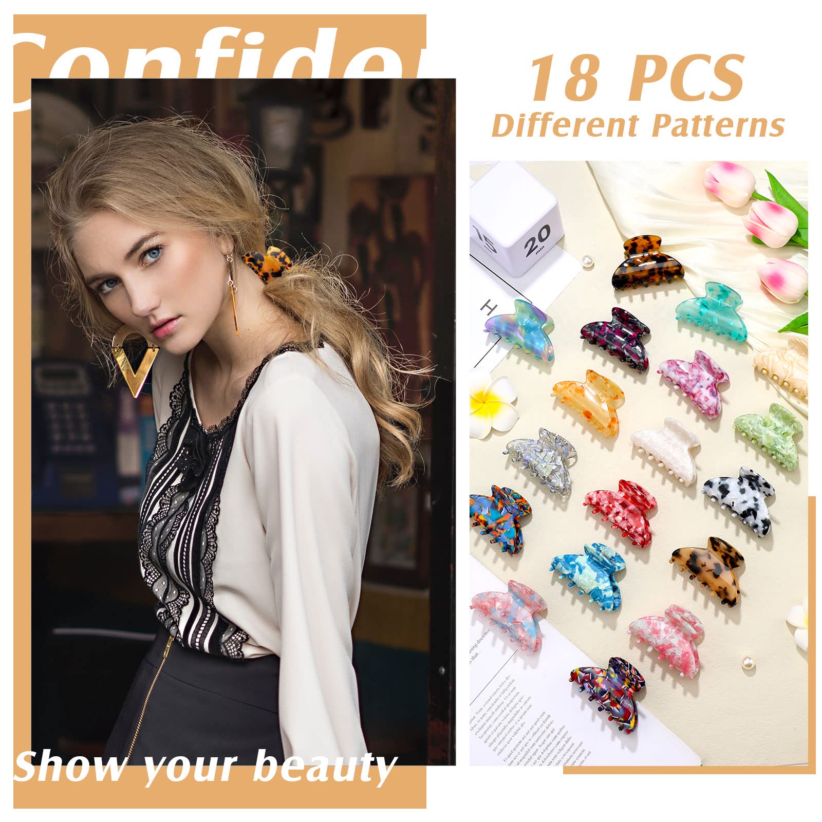 18 Pcs Hair Claw Clips Medium 2.6 Inch Tortoise Shell Hair Clips Banana Jaw Clips Celluloid French Design Barrettes Leopard Print Clip Accessories for Women Girls Hair Jaw Clip, Assorted Styles