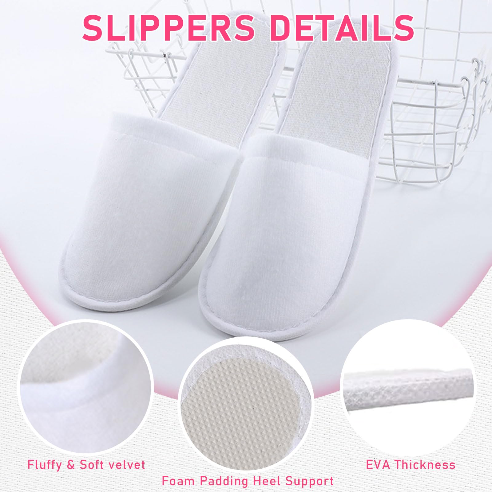 - Charming and Delicate Appearance: these disposable house slippers are available in white color, versatile and practical, and the blindfolds and robes are designed in pink, pretty and beautiful, add charm and elegance to you