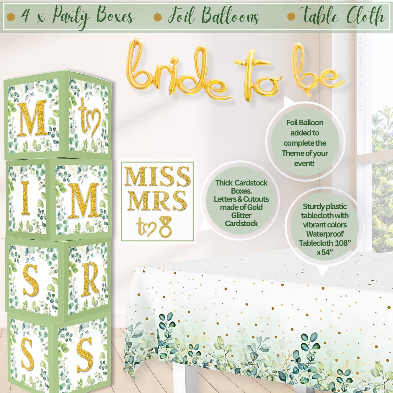 190 Pieces Bachelorette Party Decorations, Bridal Shower Decoration, Sage Green Wedding Shower Decorations 2 in 1 - Balloon Garland Bow and Boxes