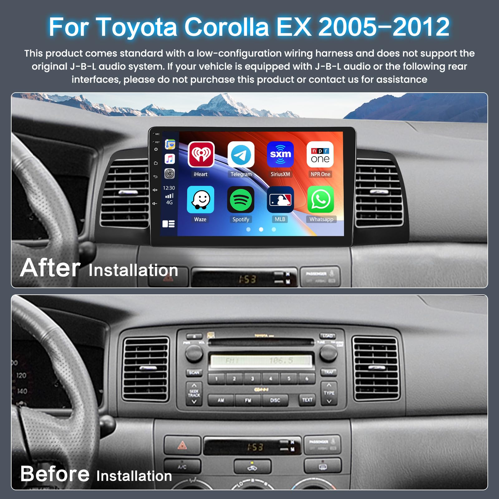 - Compatible Car Models: Inefala android car radio for toyota corolla ex 2005 2006 2007 2008 2009 2010 2011 2012. 9 inch 1080P HD touch screen for toyota corolla ex with latest version of Android car radio, 2GB (RAM) + 64GB (ROM), USB fast charging port, 1024*600 resolution