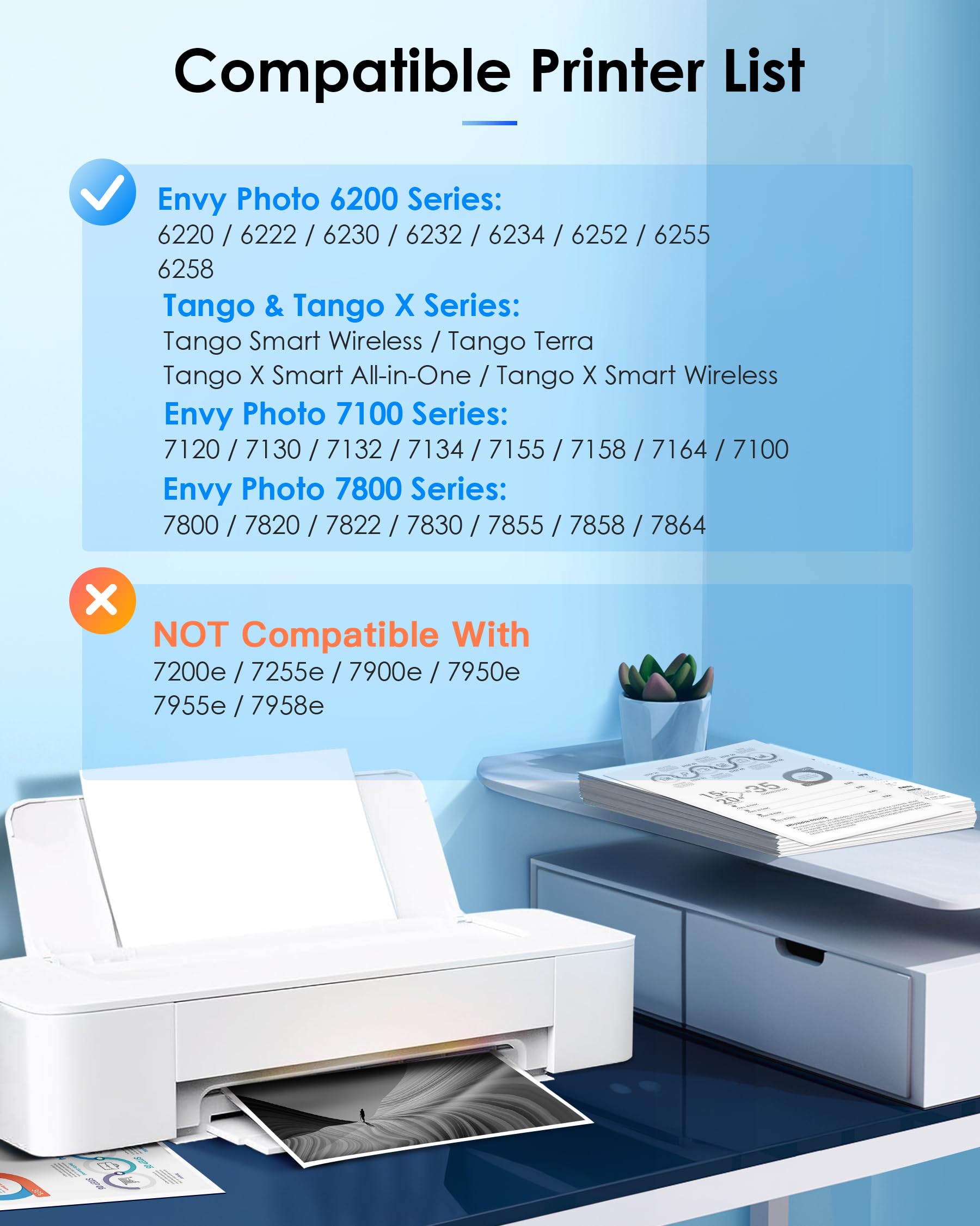 - Compatible with the following for HP printers: for HP ENVY Photo 6200 Series: 6220 6222 6230 6232 6234 6252 6255 6258 ENVY Photo 7100 Series: 7120 7130 7132 7134 7155 7158 7164 7100 ENVY Photo 7800 Series: 7800 7820 7822 7830 7855 7858 7864