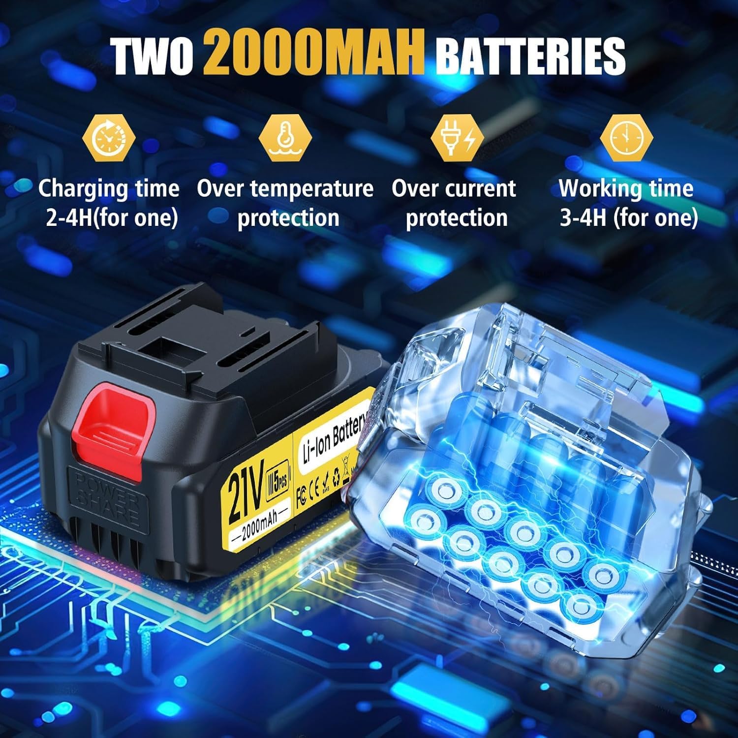 - 🔋 [21V Dual Batteries - Long-Lasting Battery Life] Equipped with two 21V 2000mAh high-capacity lithium batteries, they can be used interchangeably. A single charge takes only 2-3 hours, delivering up to 2,400 trims—ten times more efficient than traditional manual pruning shears. This saves you significant time and effectively reduces hand fatigue. Pro Tip: (For optimal battery life and performance, fully charge the batteries before first use).
