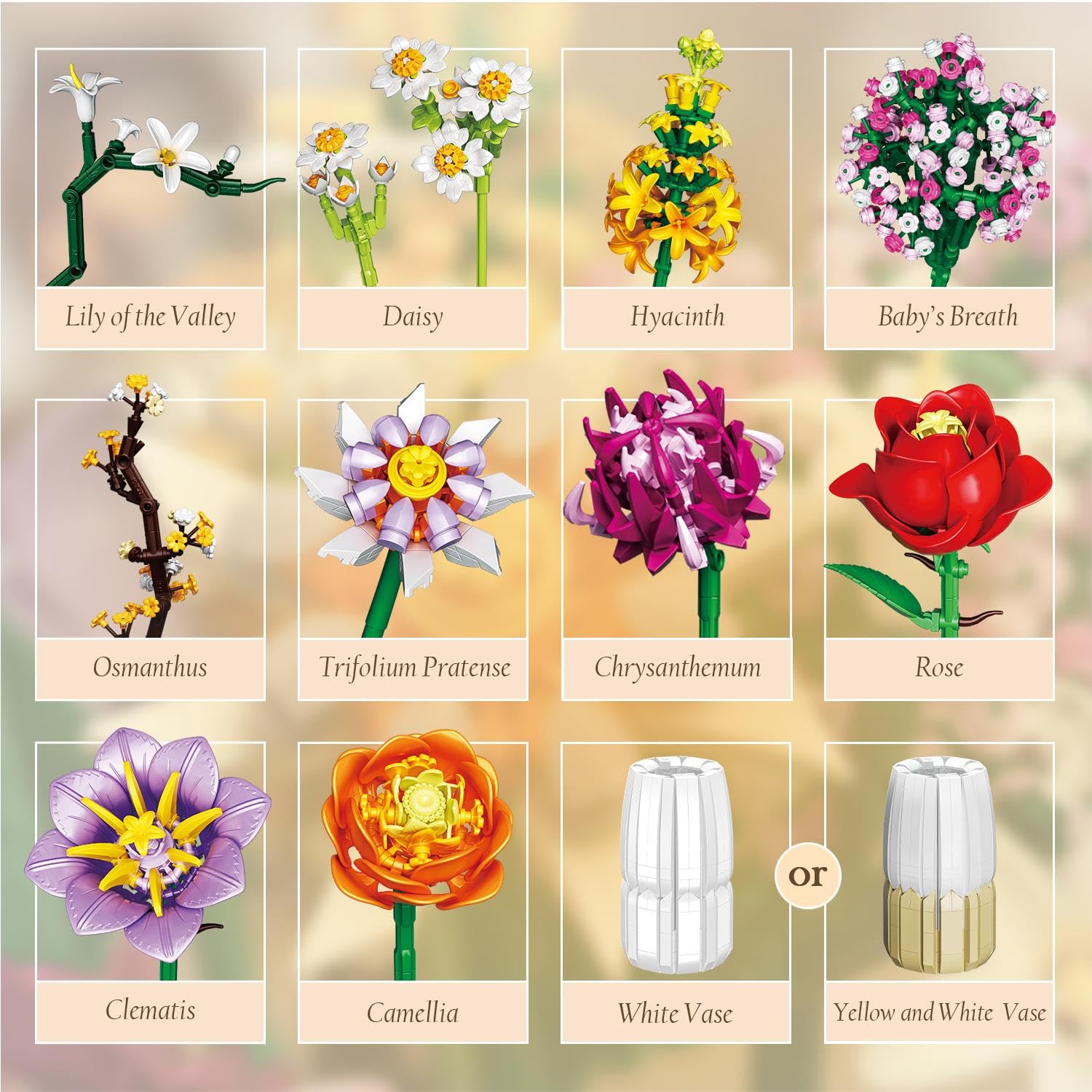 - 【Timeless Gift, Ever-Blooming Joy】Surprise loved ones on Christmas, birthdays, Mother’s Day, or anniversaries! This flower bouquet building set with a dual-hue vase lets them build, display, and cherish a unique arrangement—no wilting, no watering, just lasting creativity. A gift that grows with every memory.