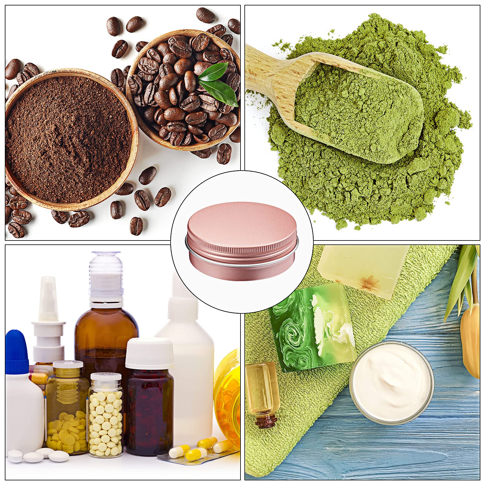 2 oz Metal Round Tins Aluminum Tin Cans Salve Tins Containers with Screw Lid 10 Sheets Stickers for Salve Spice Candies Balms Candles, 36 Pack (Rose Gold)