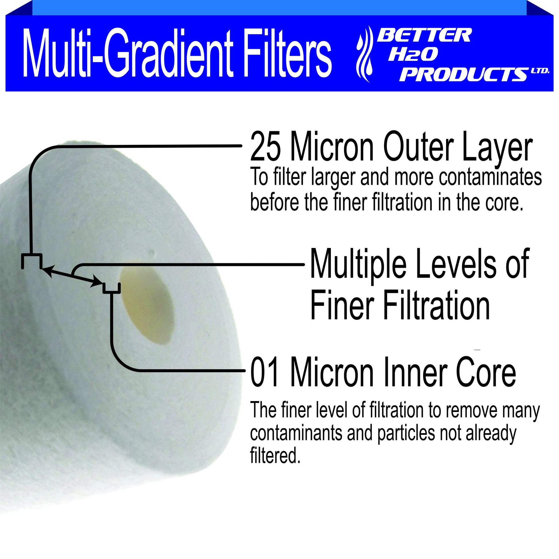 - 💧 [2 Pack] 1 Micron Multi-Gradient Density, Multi-Layered, Melt Blown Sediment Filter Cartridges.
