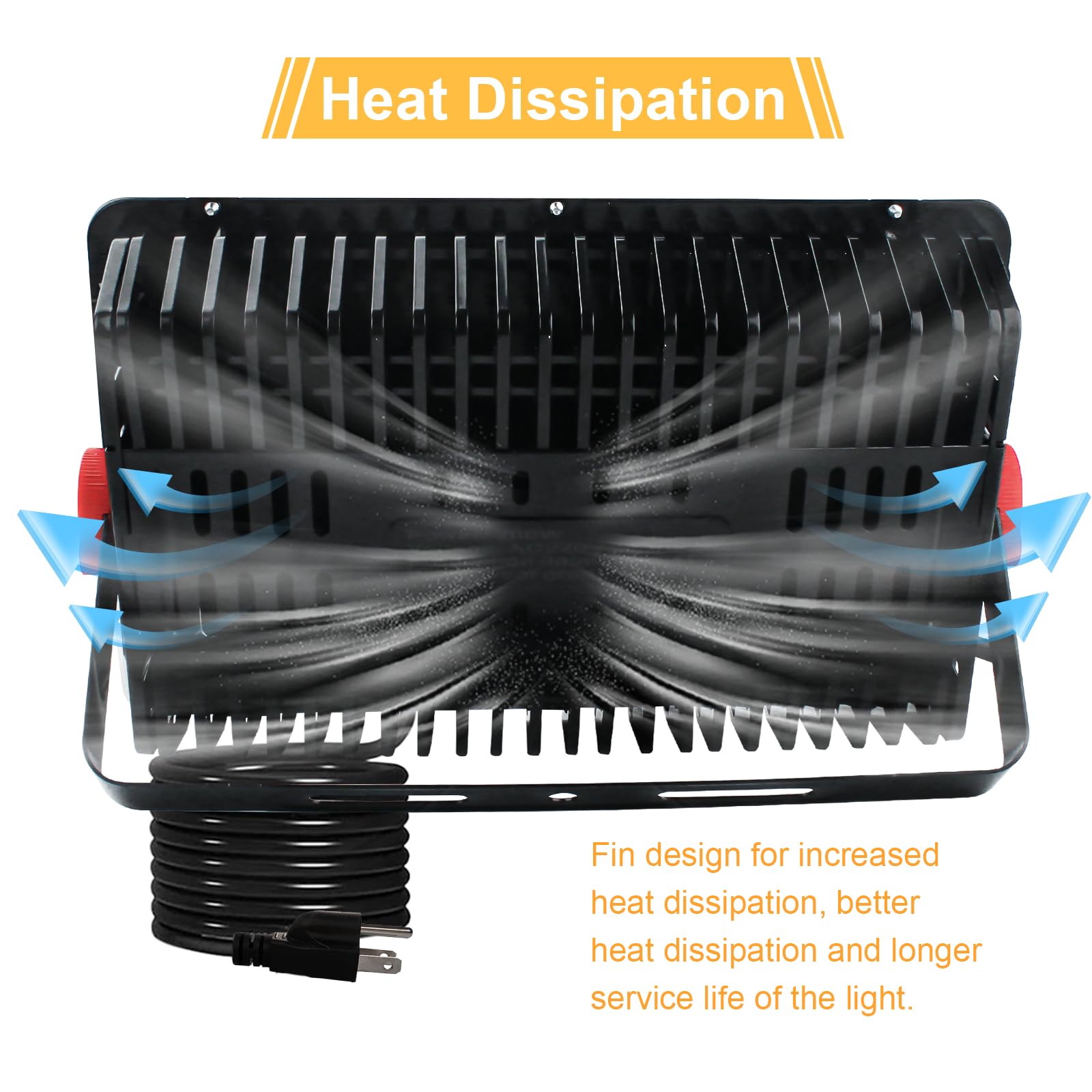 - 💡【Durable Material & Efficient Cooling】Adopts high-quality lamp beads as the light source, the floodlight can produce brighter light than normal chips. The special fin-type heat sink design and the aluminum housing material, which provide more efficient heat dissipation and prolong the lifespan of the light.