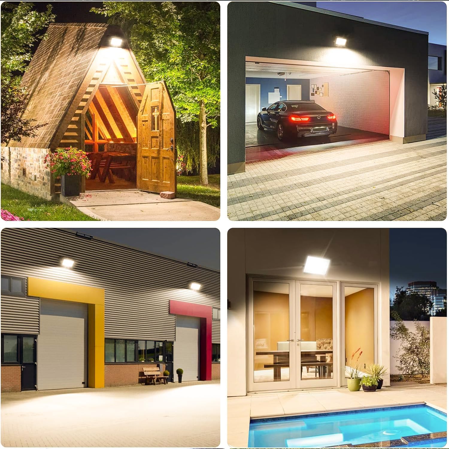 - 💡【IP66 Waterproof 3000K Warm White Flood Light】The die-cast aluminum body and sturdy cover design of the light, ensure this flood light waterproof can work well in terrible weather, such as rain, sleet, snow. It's perfect for outside lightings, like yard, gardens, playground, backyards, squares, garages, etc.
