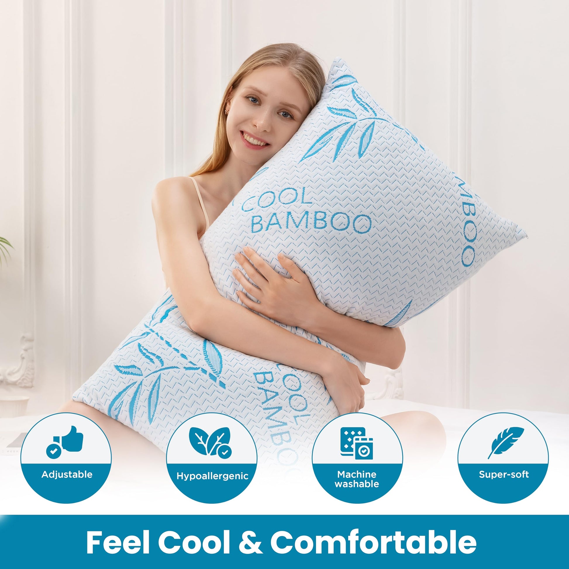 Details: 2 Pack King Size Rayon Derived from Bamboo Pillows for Sleeping, Cooling Shredded Memory Foam Adjustable Rayon Derived from Bamboo Bed Pillow with, Removable/Washable Cover (King 2 Pack)