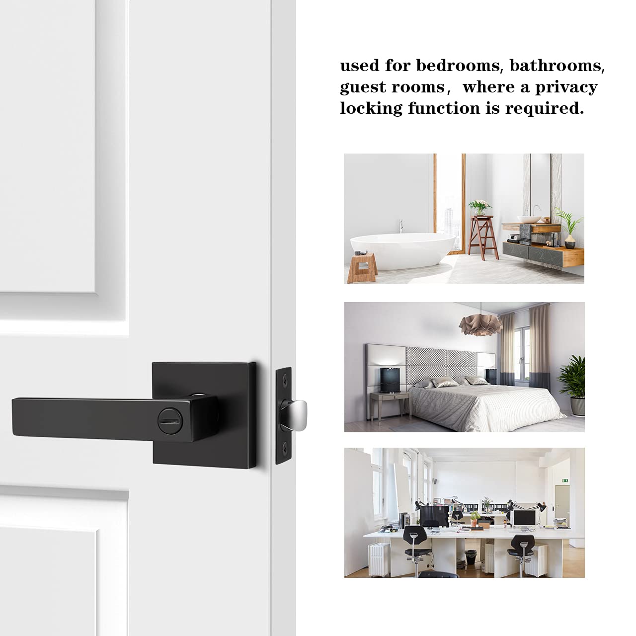 - Privacy Door Lock Feature: Fits for interior door where a privacy locking function is required, such as bathroom, bedroom and office door, no key but with locking function. The inside lever comes with a thumb turn which allows the door to be locked. Also could be unlocked using a coin from the outside during some emergency situations.