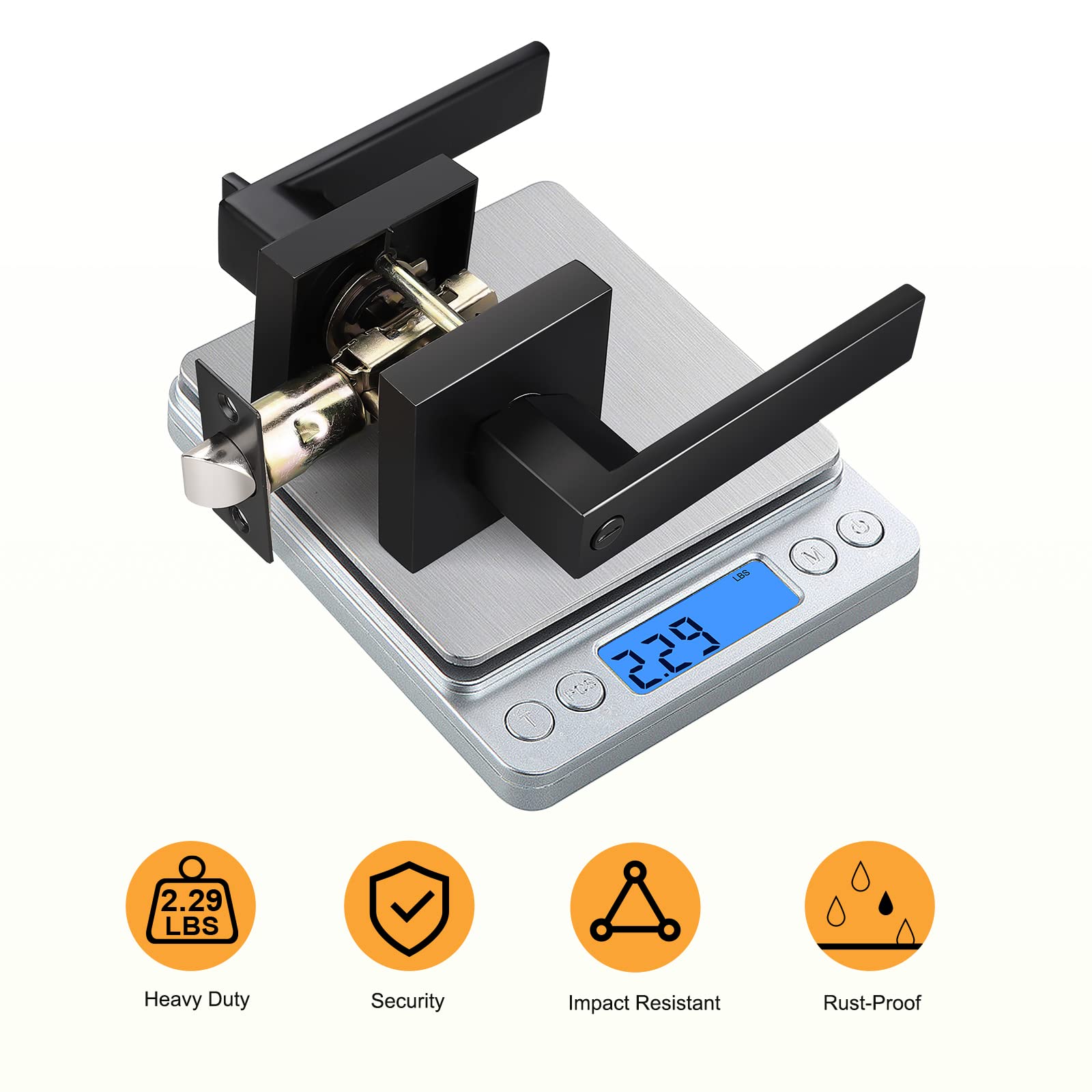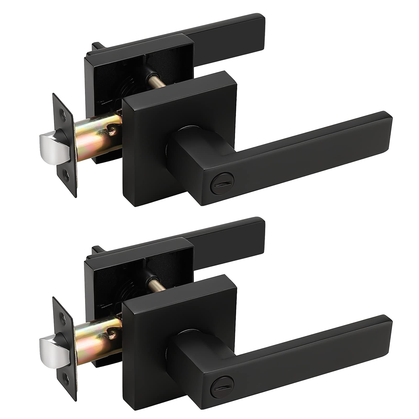2 Pack Probrico Privacy Square Door Handle in Matte Black Finish for Interior Door Bedroom and Bathroom, Keyless Door Lockset, Heavy Duty Reversible Door Lever