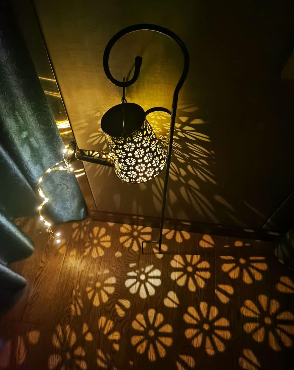 - 【Charming Garden Decoration Lights】: 2 watering can lights will be a charming addition to your patio at night, emitting bright lights that looks like strings of shining stars pouring out of a watering can, casting beautiful patterns on the ground for a romantic atmosphere. You'll love them when they light up your garden.
