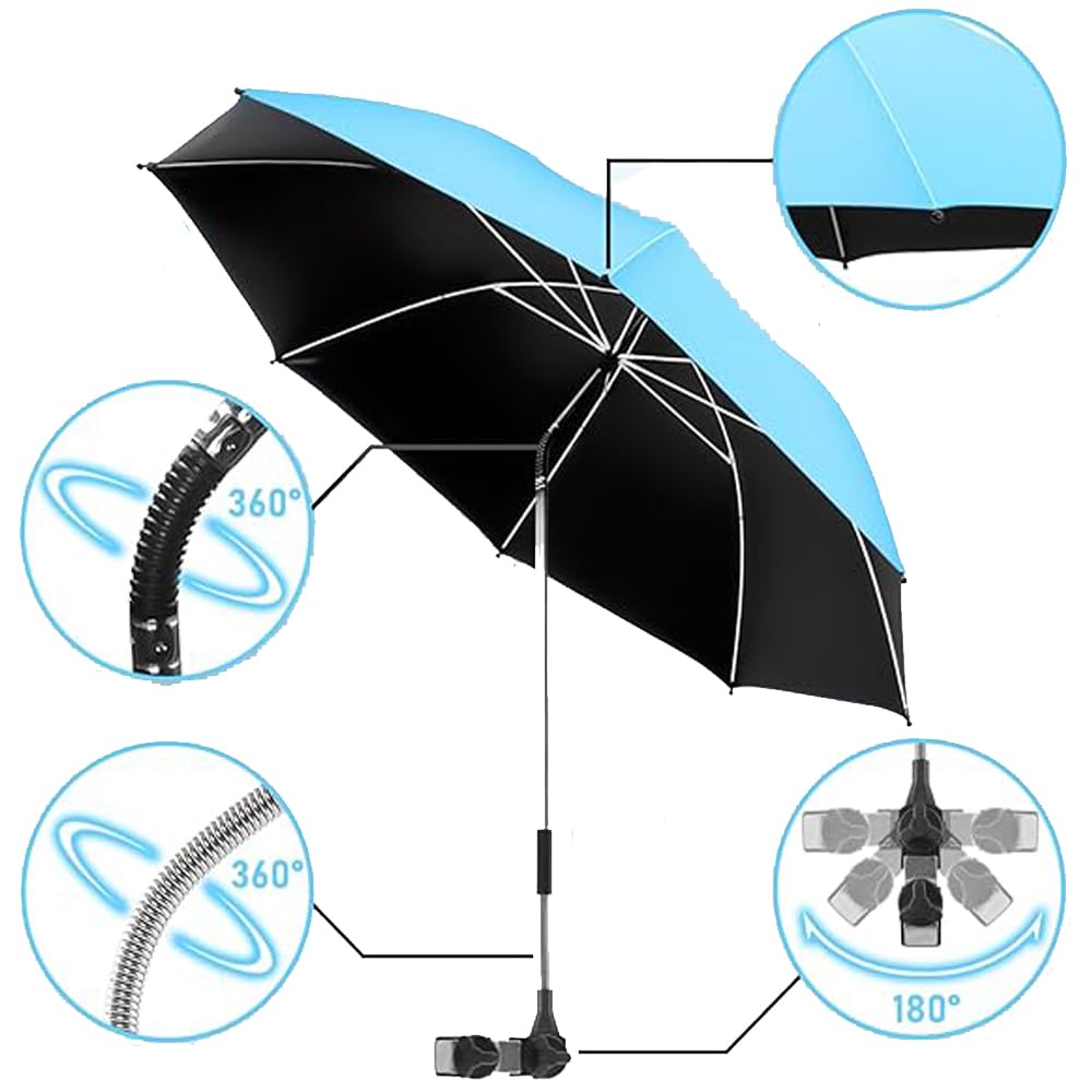 - 【Materials 】This Clip On Umbrella For Beach Chair Boasts Robust Carbon Fiber Ribs. This Umbrella With Clamp Is Ensuring Outstanding Durability And Resistance To Rust.