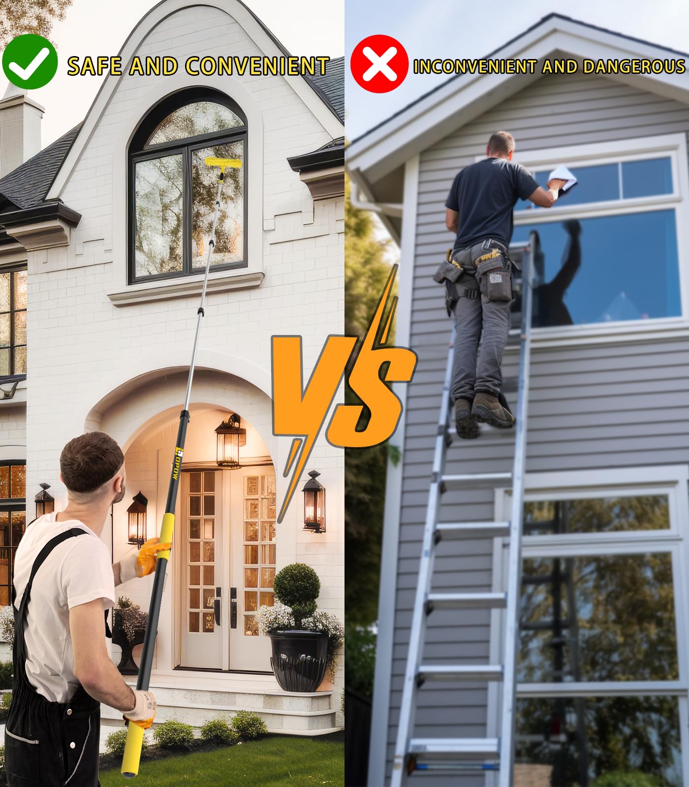 - Gurantee A Safe High Cleaning: The OPOW telescoping pole replaces the risks and fatigue associated with unstable ladders. By using this robust tool, you significantly reduce the chance of accidents during high-reaching tasks like painting or cleaning. It keeps your feet firmly on the ground, transforming difficult chores into safer, more manageable undertakings without compromising on reach or efficiency