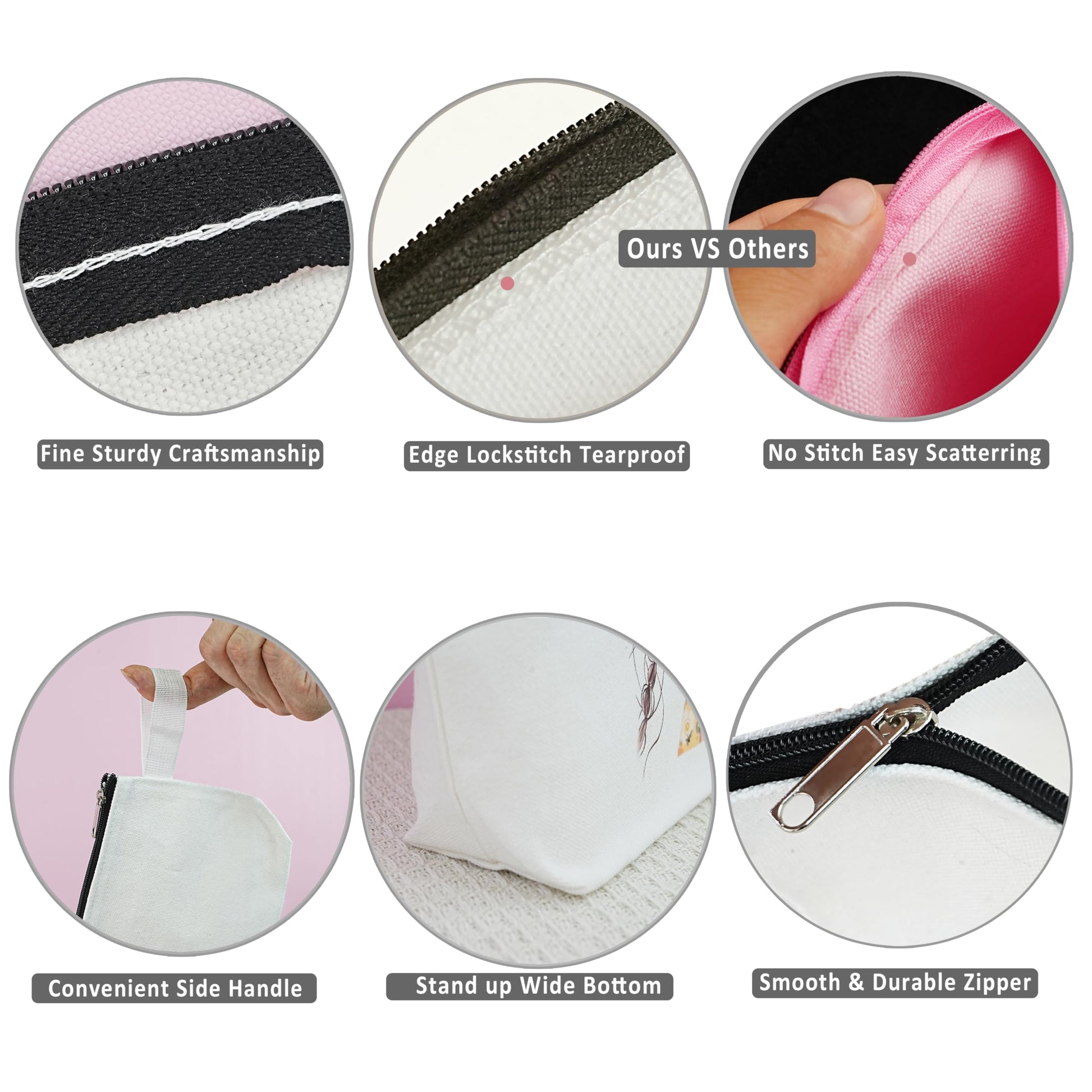- Multi-Purpose Pouches -- these blank small make up bag with bottom are suitable for daily & travel needs, just the right size, you can put your favorite cosmetics inside, they can also be used as travel bags, put them in a luggage bag for weekend travel; also craft bags, gift bags, promotional bags to DIY your own pattern on; Also storage bags, stationary bags to store items in an orderly manner.