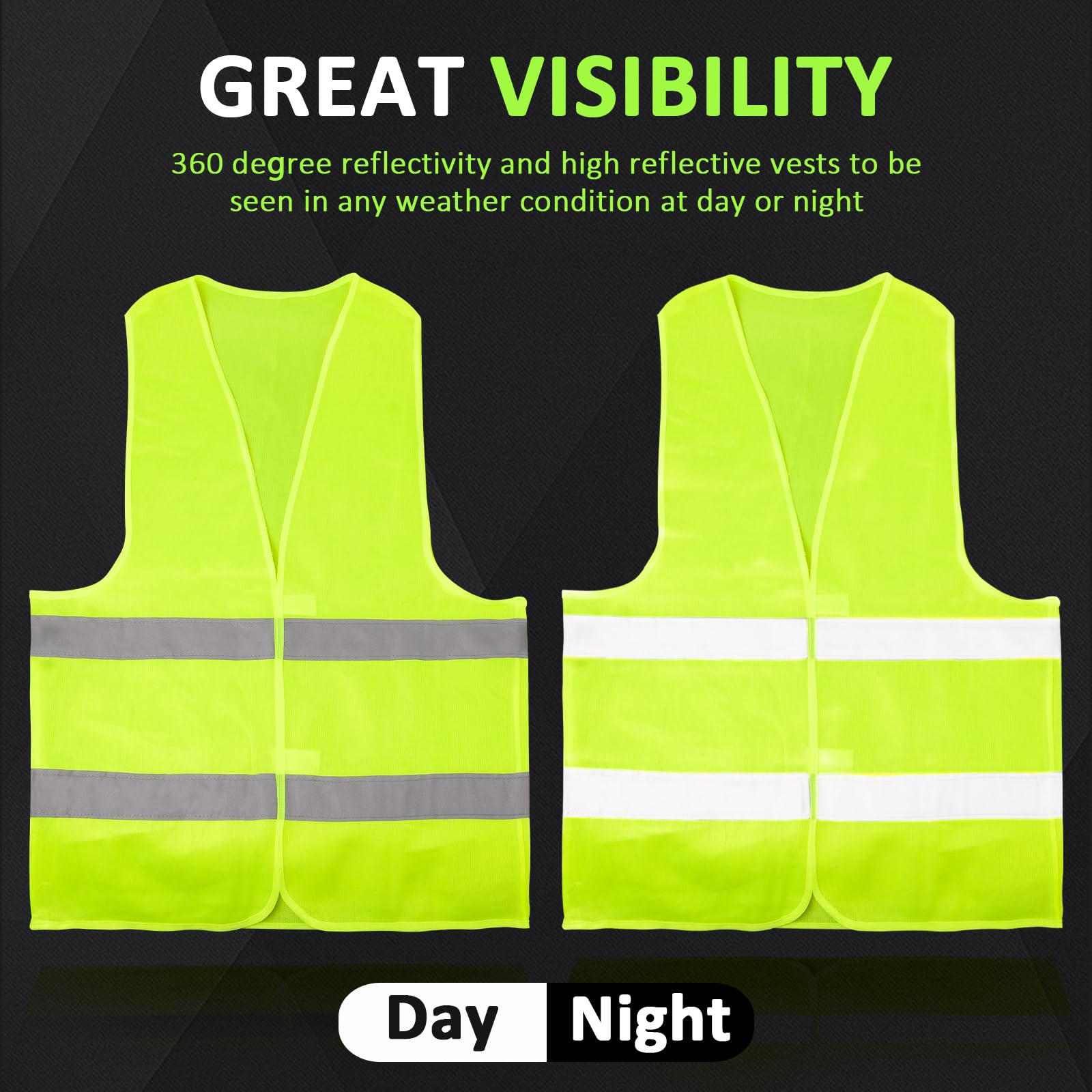- STAY SAFE WITH GREAT 360 DEGREE VISIBILITY - Fluorescent Safety Vest with high visibility reflective silver strips that wraps entire vest. Hi Vis in 360 degrees, front to back, side to side. These reflective high visibility strips work as great reflectors shining night or day. Keeping you visible to people, cars, and more!