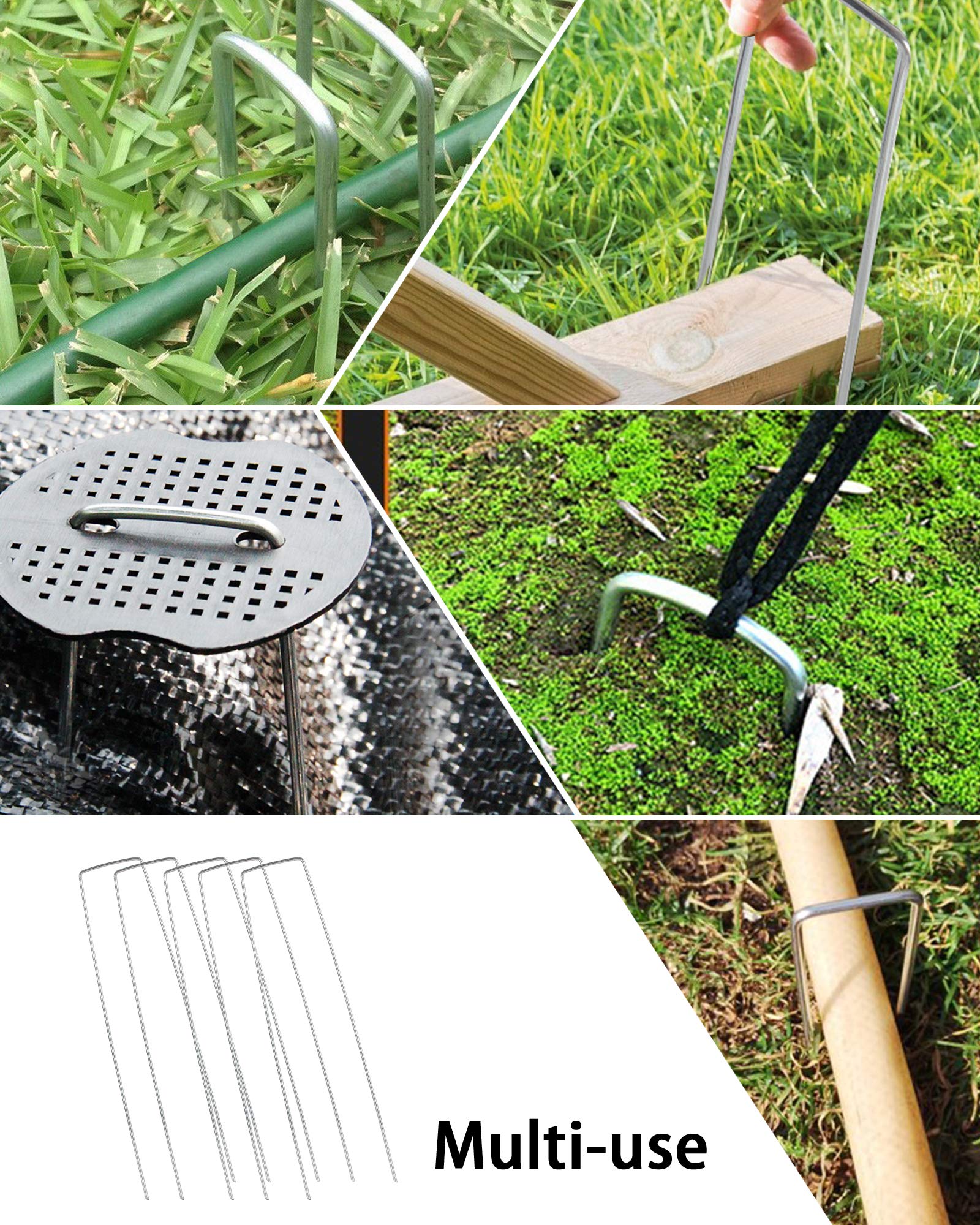 - Multiple Uses: Our professional-grade garden stakes are incredibly sturdy and ideal for securing underground fabrics, edges, chain-link fences, tomato cages, gardening hoses, or lawn drip irrigation pipes. They are also perfect for providing security lighting, LED lights, string lights, outdoor wires, cables, and festive decorations. These stakes offer protection for plants, vegetables, flowers, and bulbs from toppling over, and they have countless other uses