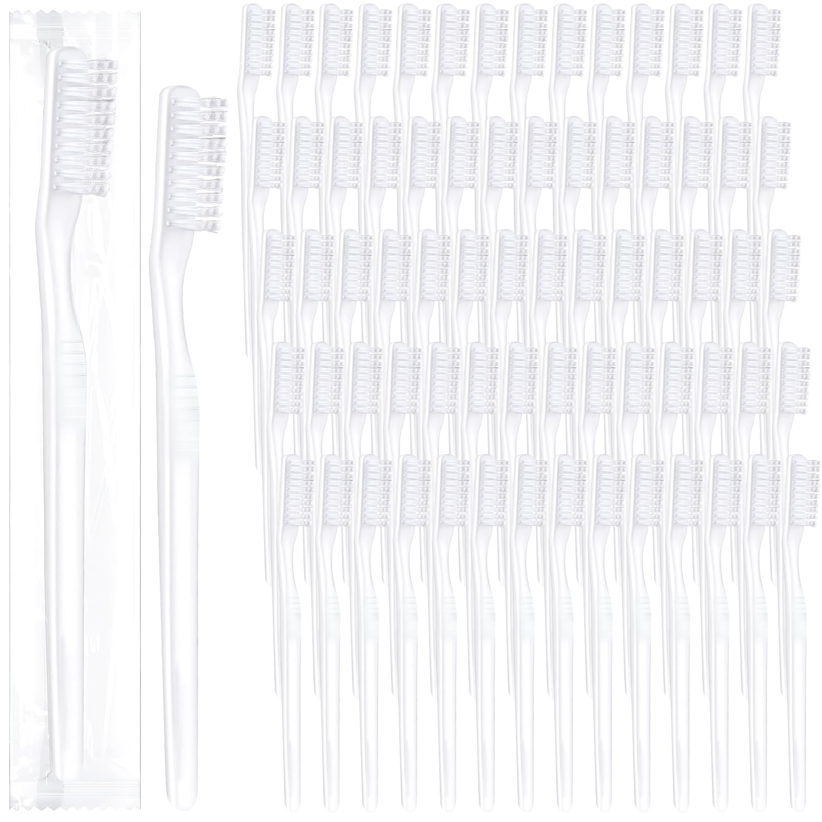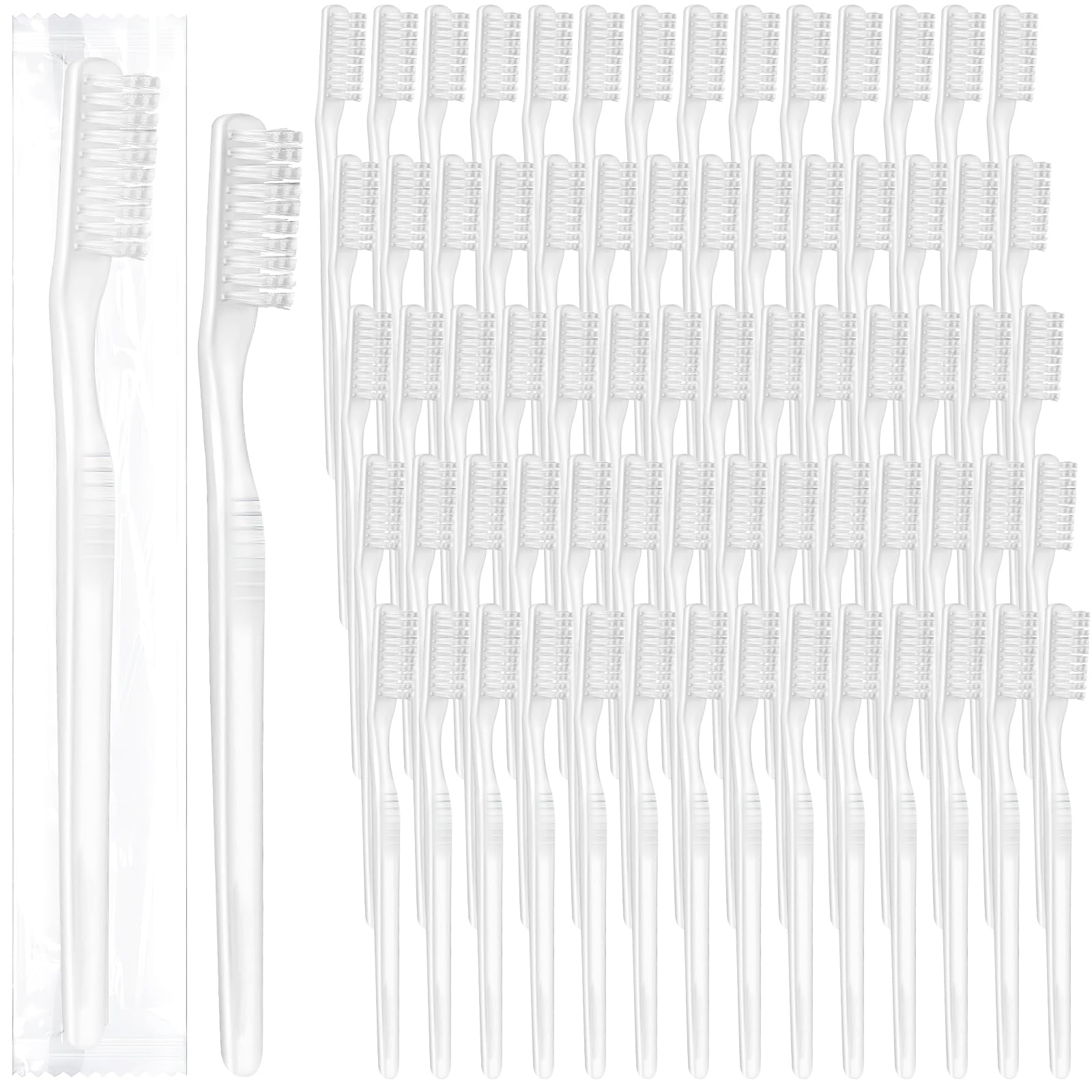 200 Pack Disposable Toothbrushes, Individually Wrapped Soft Bristles Toothbrushes Bulk Travel Tooth Brush Single Use Wrapped for Hotel Camping Travel, Guests & Homeless(White)