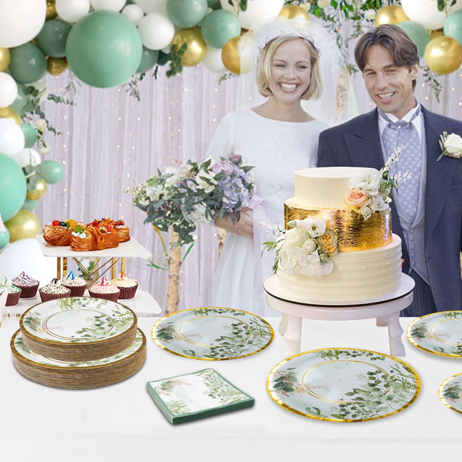 - Exquisite Design: This bridal shower decorations are designed to white background and eucalyptus leaves pattern with surrounding gold trim. The white paper plates and cups are all enhanced with attractive greenery pattern. Adding an elegant, fancy touch to your party. This paper plates and napkins sets are perfect for a cozy spring themed event.