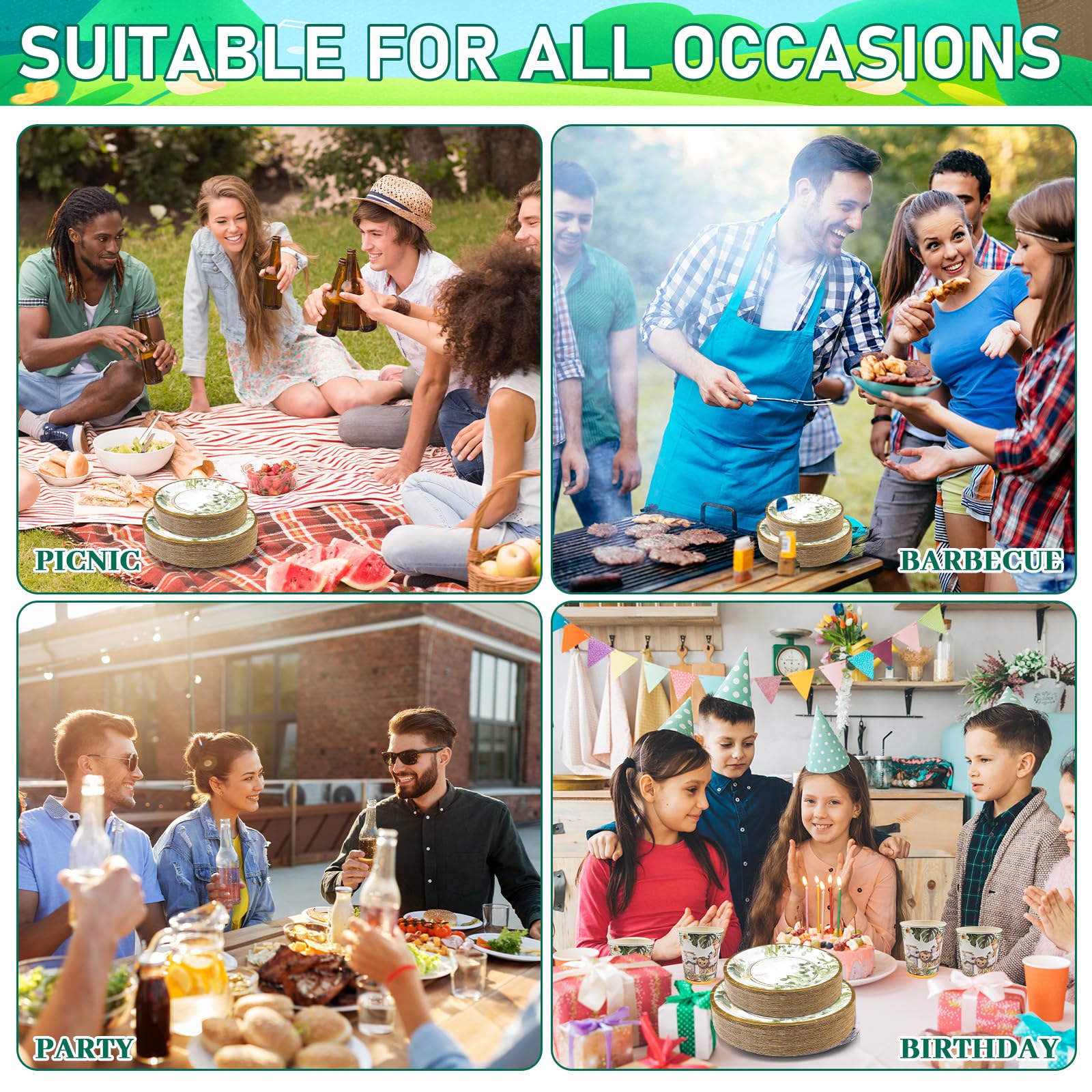 - Save Time & Enjoy Party: Featured with disposable nature, our sage green paper dinnerware set can make cleanup easily, you can throw them away when you clean up after an event or party. Save time and effortless. You can spend more time with your family or friends at parties.