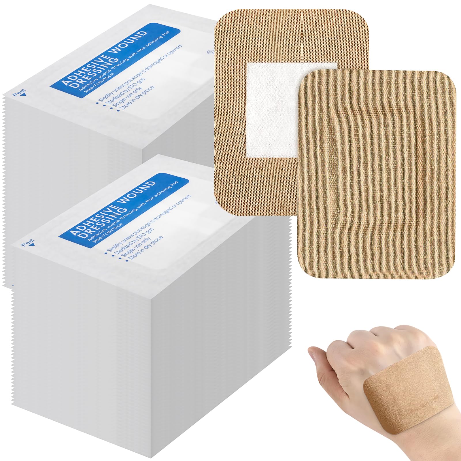 200Pcs Large Bandages, 3 x 4 Inch Adhesive Bandages Bulk, Big Sterile Flexible Fabric Bandage Nonstick Pads First Aid Supplies for Care & Protect Wounds First Aid Kit
