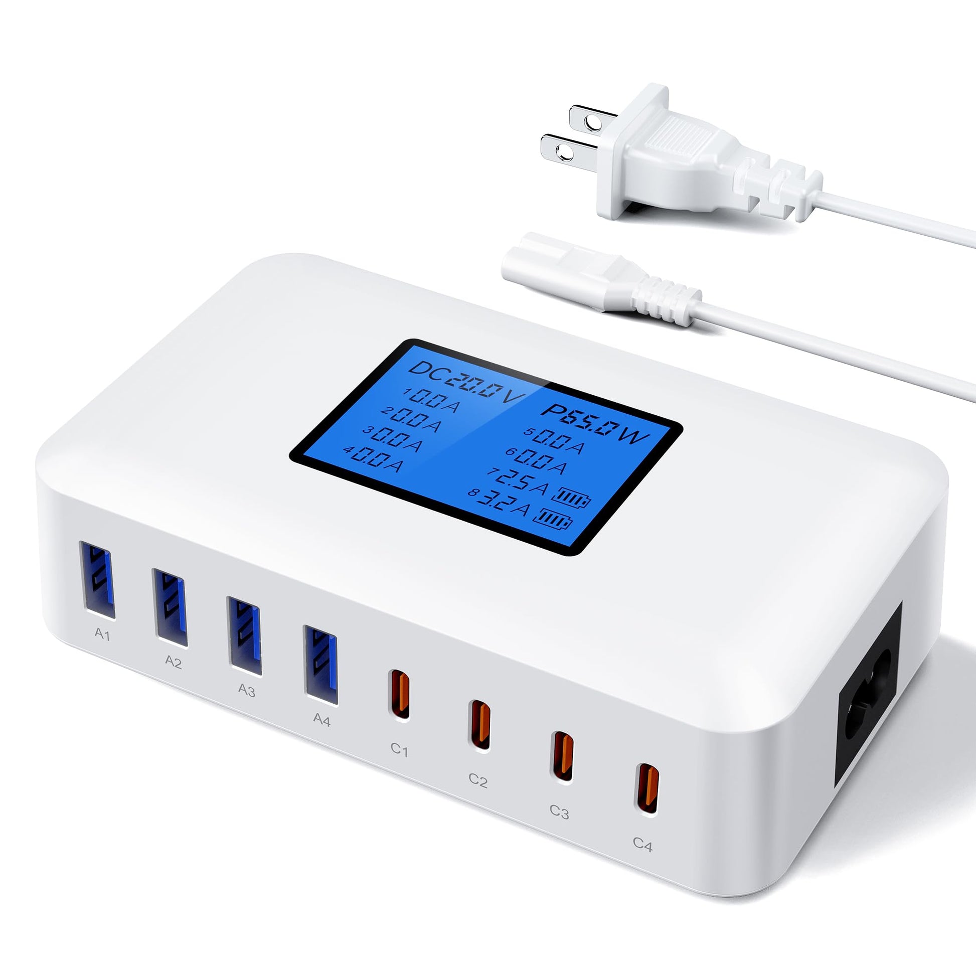 - 【65W High-Speed USB C Charger Block】The USB-C4 port on this multiple usb charger delivers 65W fast charging, allowing you to fully charge high-power devices like the MacBook Pro 16" in just 1 hour and 30 minutes. This usb charging hub ensures full power for laptops and other high-demand devices, meeting your needs for efficient work.