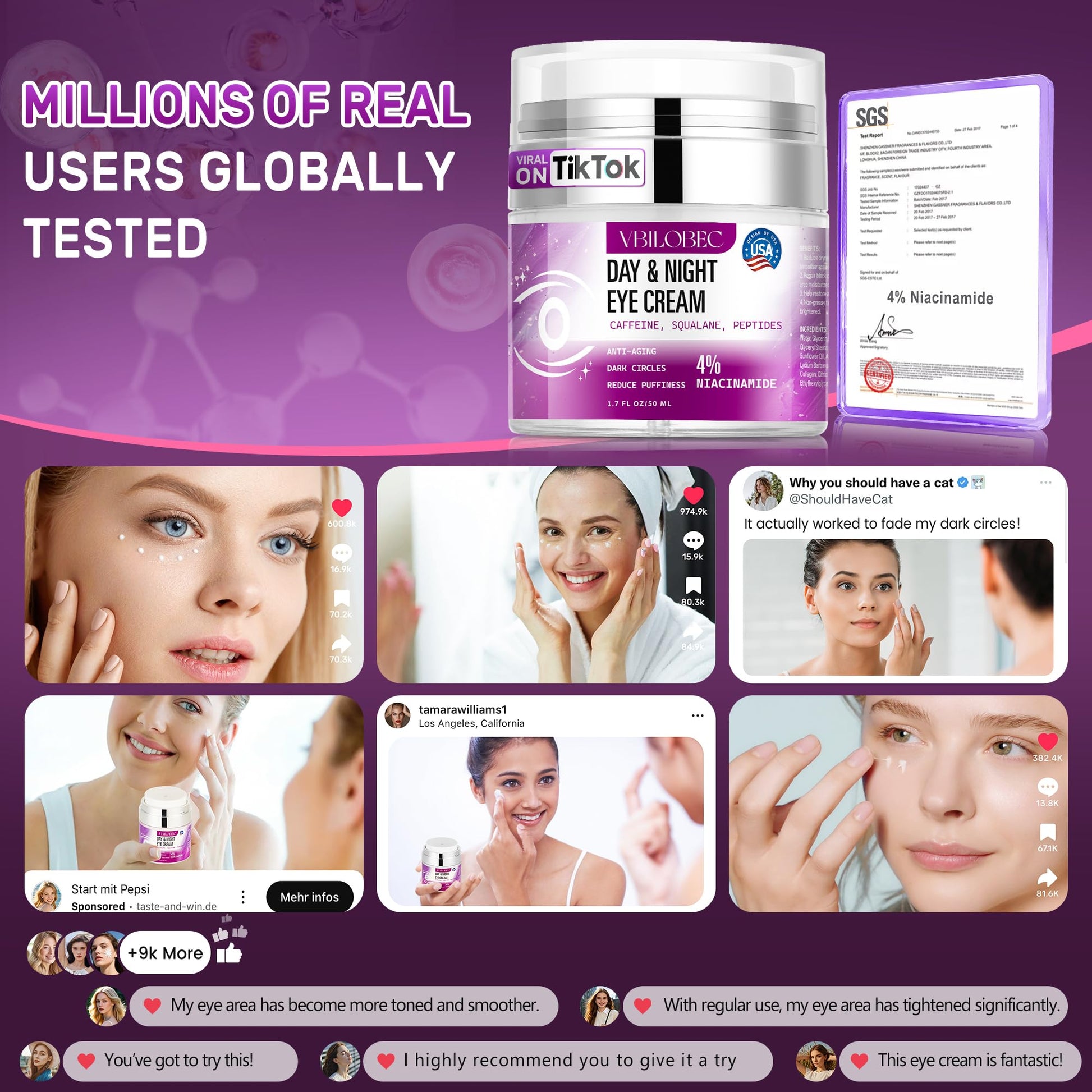 - 【Visible Results】: Noticeable results in just 14 days. Dermatologist-verified, 92% of users in clinical trials reported that our advanced caffeine eye cream effectively reduces dark circles, fine lines, and puffiness. Infused with caffeine, squalane, peptides, and niacinamide, it enhances eye elasticity, lifts the eye area, and restores a healthy glow to tired eyes