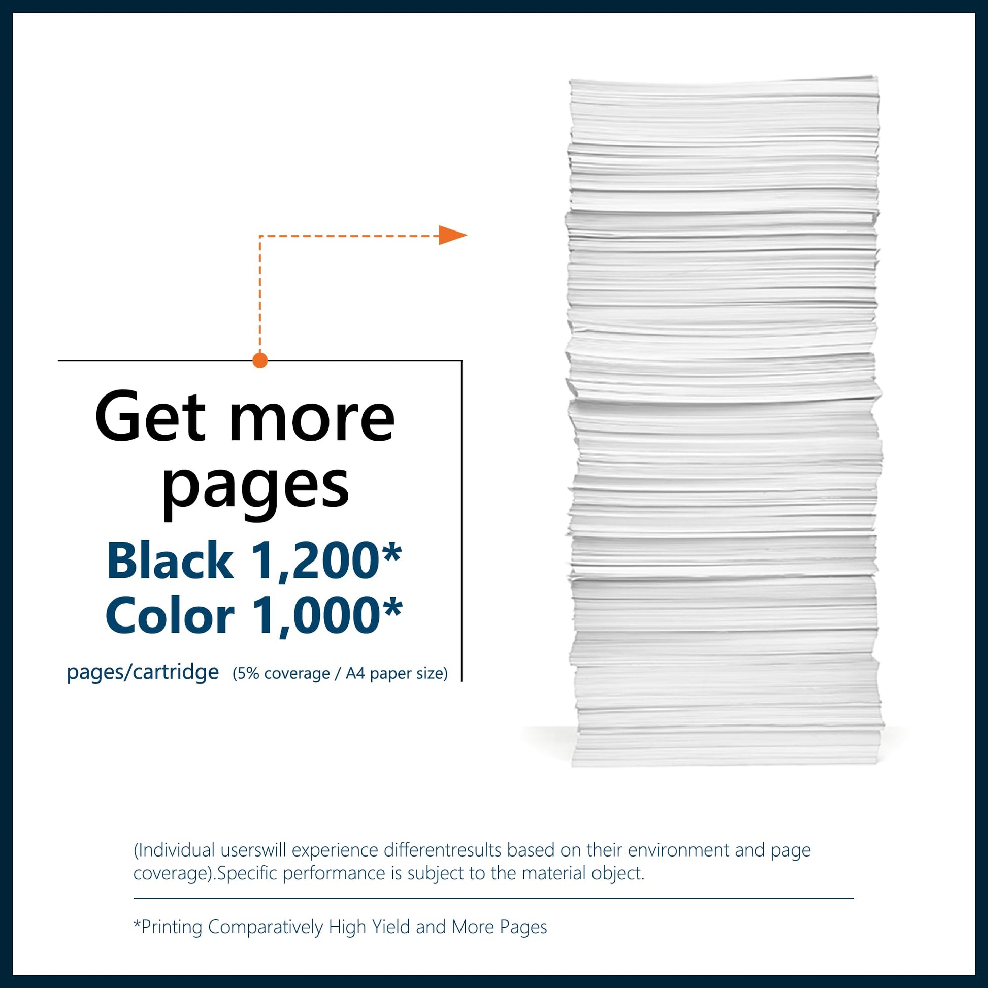 - Cartridge yield (approx.): Up to 1,200 pages per Black, 1,000 pages per Color cartridges at 5% coverage (Letter/A4).