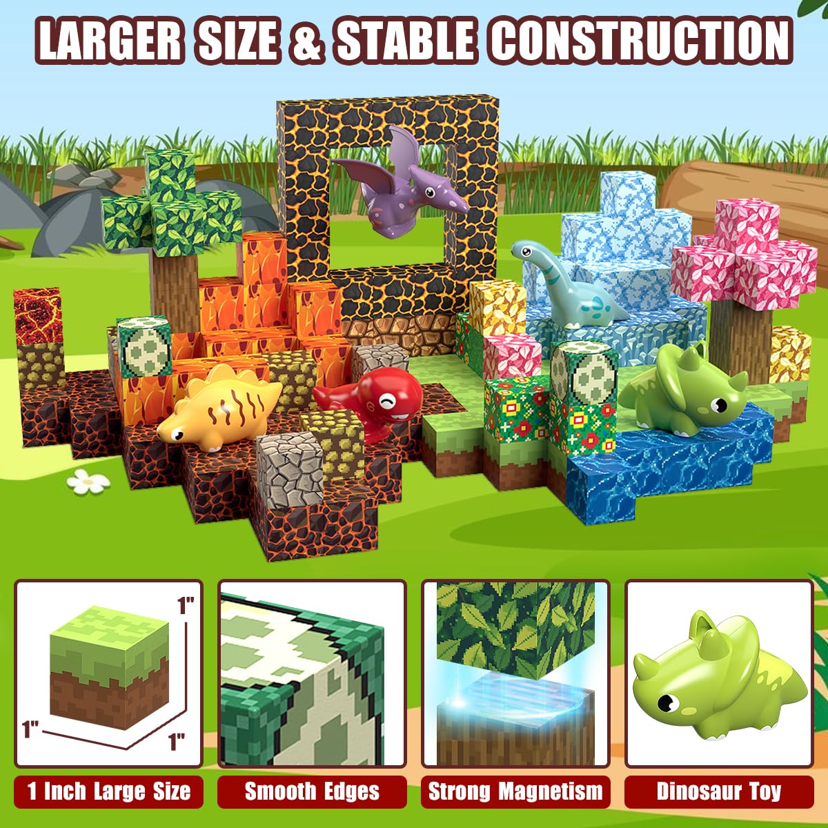 - 𝗔𝗻 𝗜𝗱𝗲𝗮𝗹 𝗚𝗶𝗳𝘁: Magnetic building blocks are perfect for keeping kids of all ages engaged, and away from screens. Whether for use in classrooms, with toddlers or preschoolers, these blocks make an excellent STEM learning resource. It's a fun individual or group activity, an ideal gift for birthdays, Christmas, Children's Day, or dinosaur-themed party, offering both fun and educational value