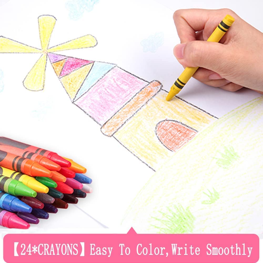 - Enough Parts: The entire art kit for kids contains 24*crayons, 48*oil pastels, 18*Solid watercolor, some paper clips, 4*clips, 12*thick watercolor pens, 24*fine watercolor pens, 24*colored pencils, 10*drawing paper, 1*double sided trifold easel and some other drawing related accessories for you, through one choice you’ll get enough painting tools for your daily drawing needs