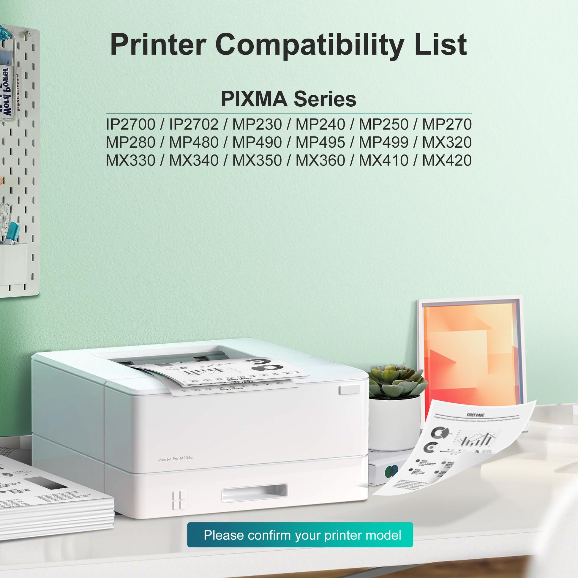 - Compatible printers: Canon PIXMA IP2702, IP2700, MX320, MX340, MX330, MX350, MX410, MX360, MX420, MP230, MP240, MP250, MP270, MP260, MP480, MP280, MP490, MP495, MP499