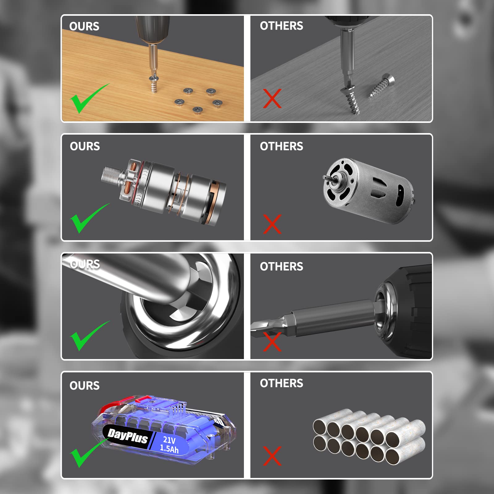 - 【Multi-Purpose Powerful Drill Set】The high quality cordless drill set is ideal for hanging pictures, assembling or repairing furniture,tightening screws and many other DIY and craft projects.