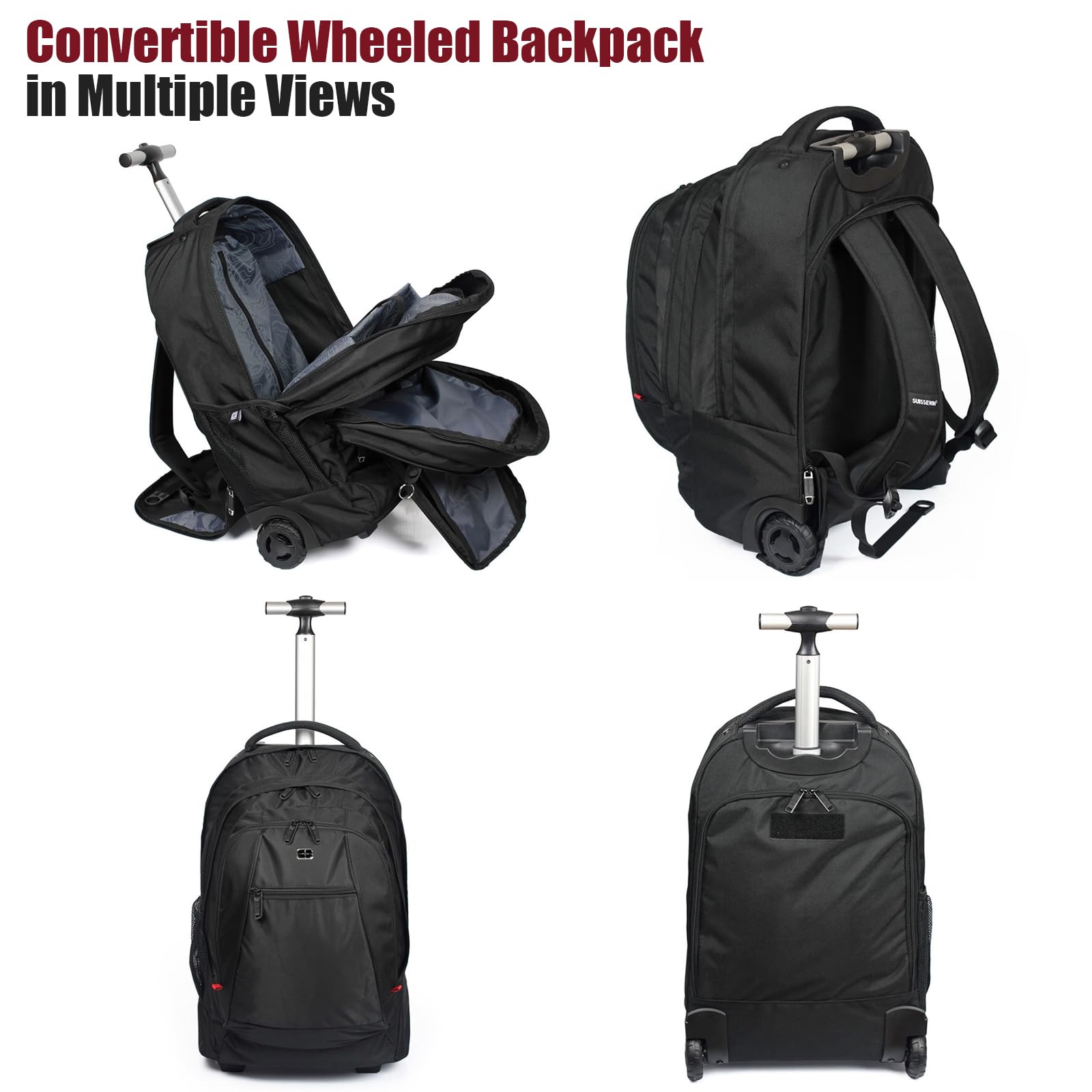 21x14x8" Rolling Backpack for Adults - Travel Backpack With Wheels, Durable Wheeled Carry-On With 17" Laptop Sleeve