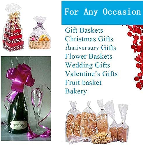 - Crystal Transparent: The celephane basket wrap will bring a professional look to your gifts. Perfect for flower shop to wrap bouquets as Valentine’s Day gifts, and anniversary presents.
